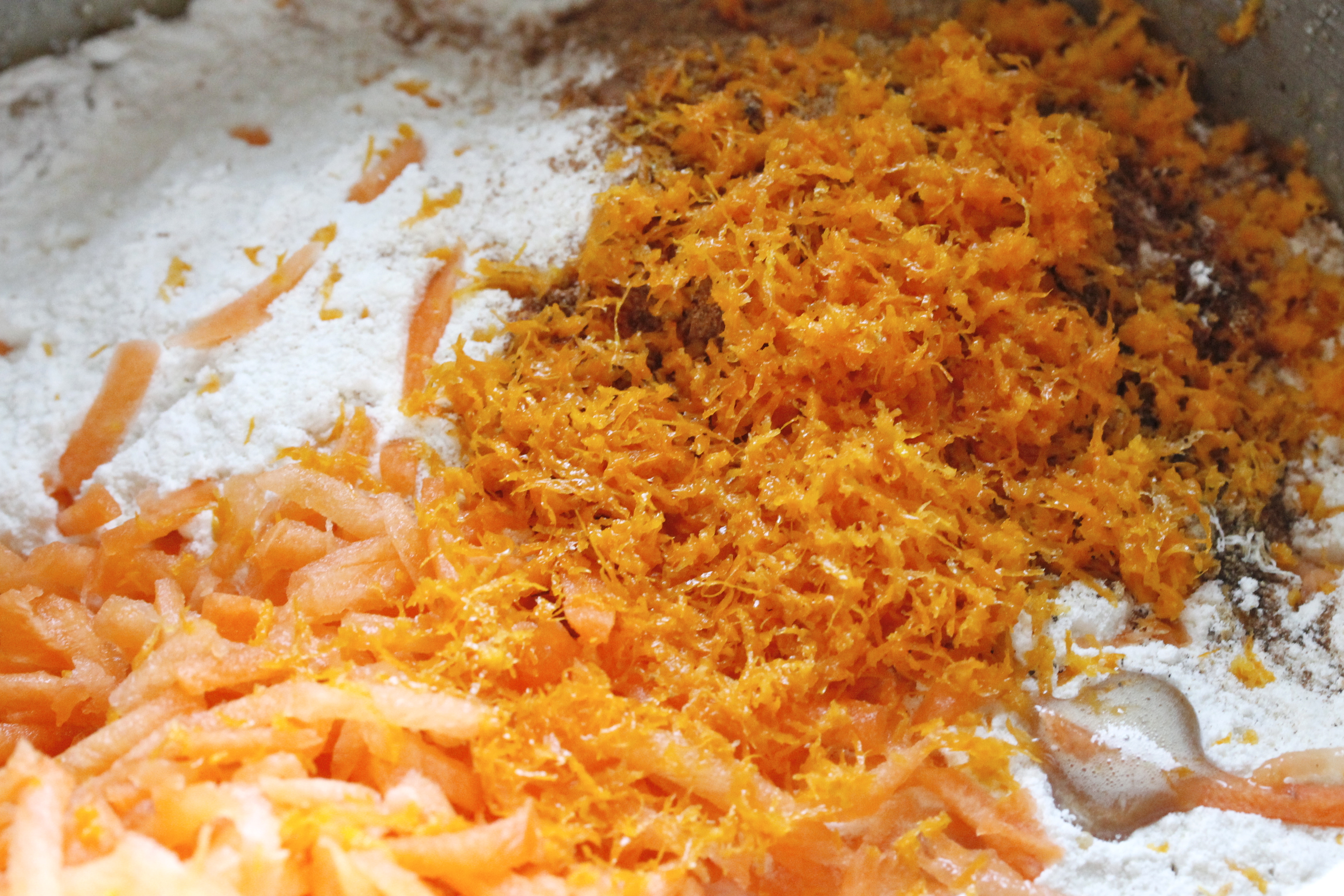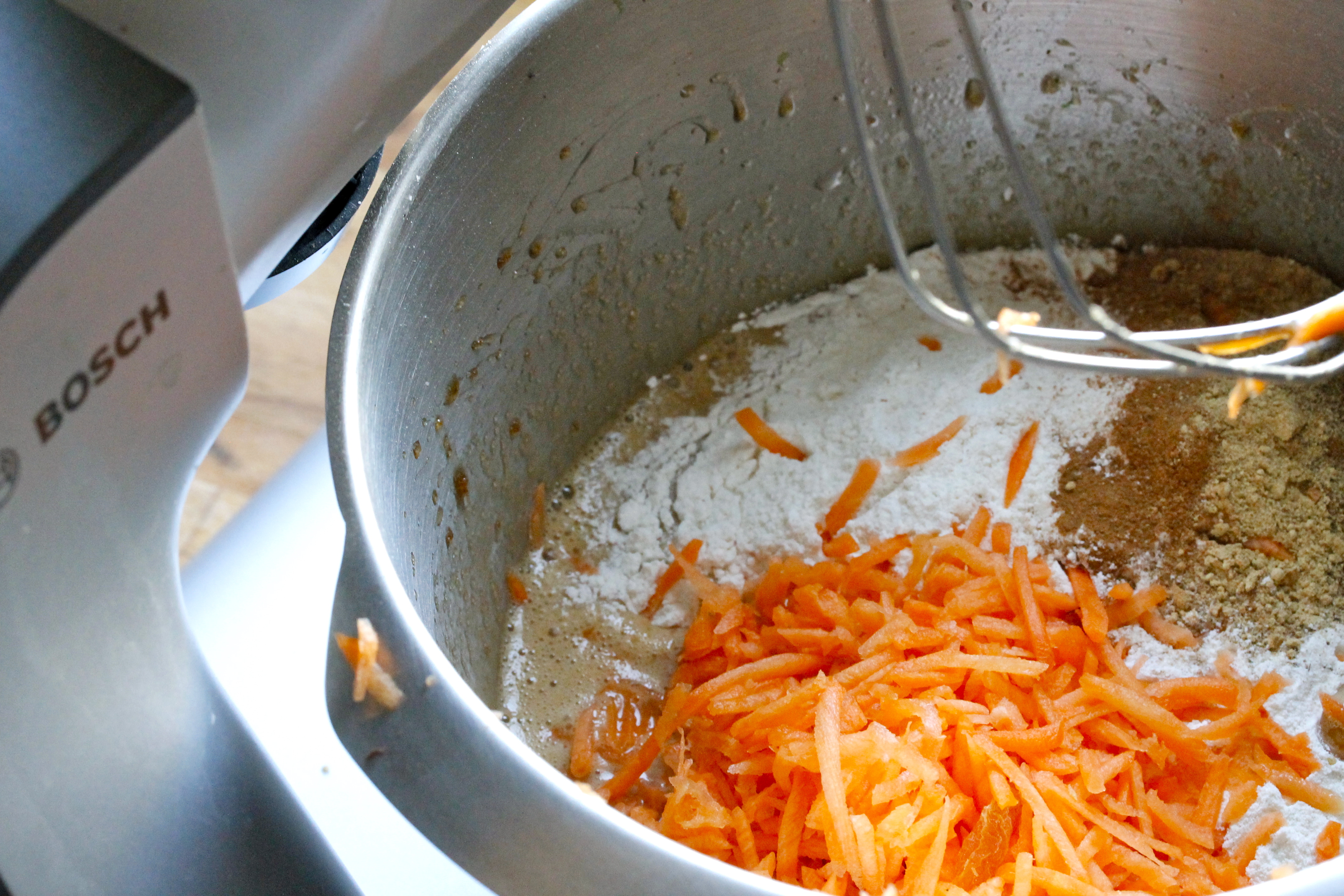 Svo setti ég hveiti, lyftiefni, krydd og gulrætur út í …