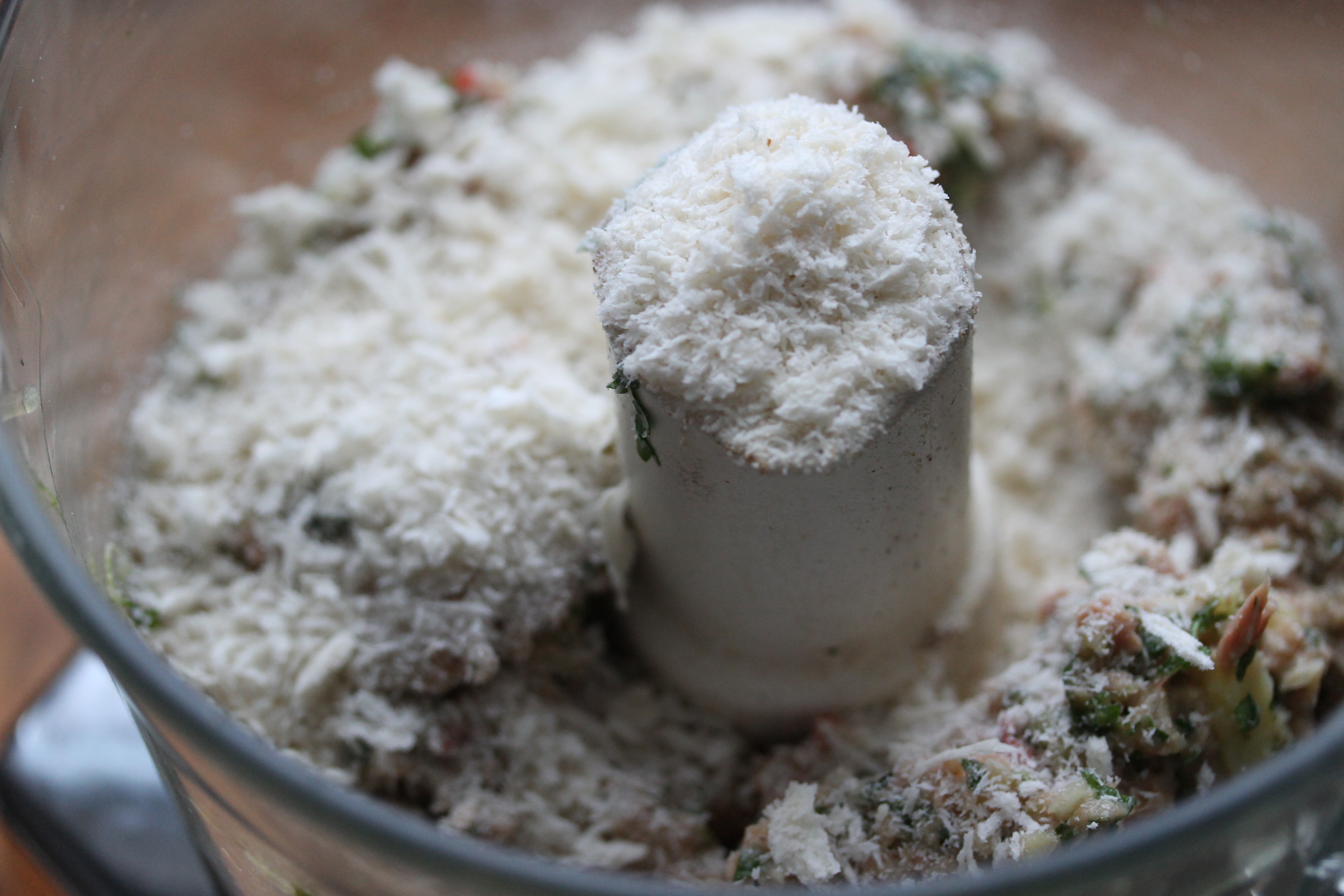 Svo hrærði ég raspinu saman við. Smakkaði og bætti við pipar og salti eftir þörfum. Það mætti líka bragðbæta með safa úr límónunni ef manni sýnist svo. Blandaði að lokum maísnum saman við með sleikju (ekki láta matvinnsluvélina gera það, maískornin eiga helst að vera heil).