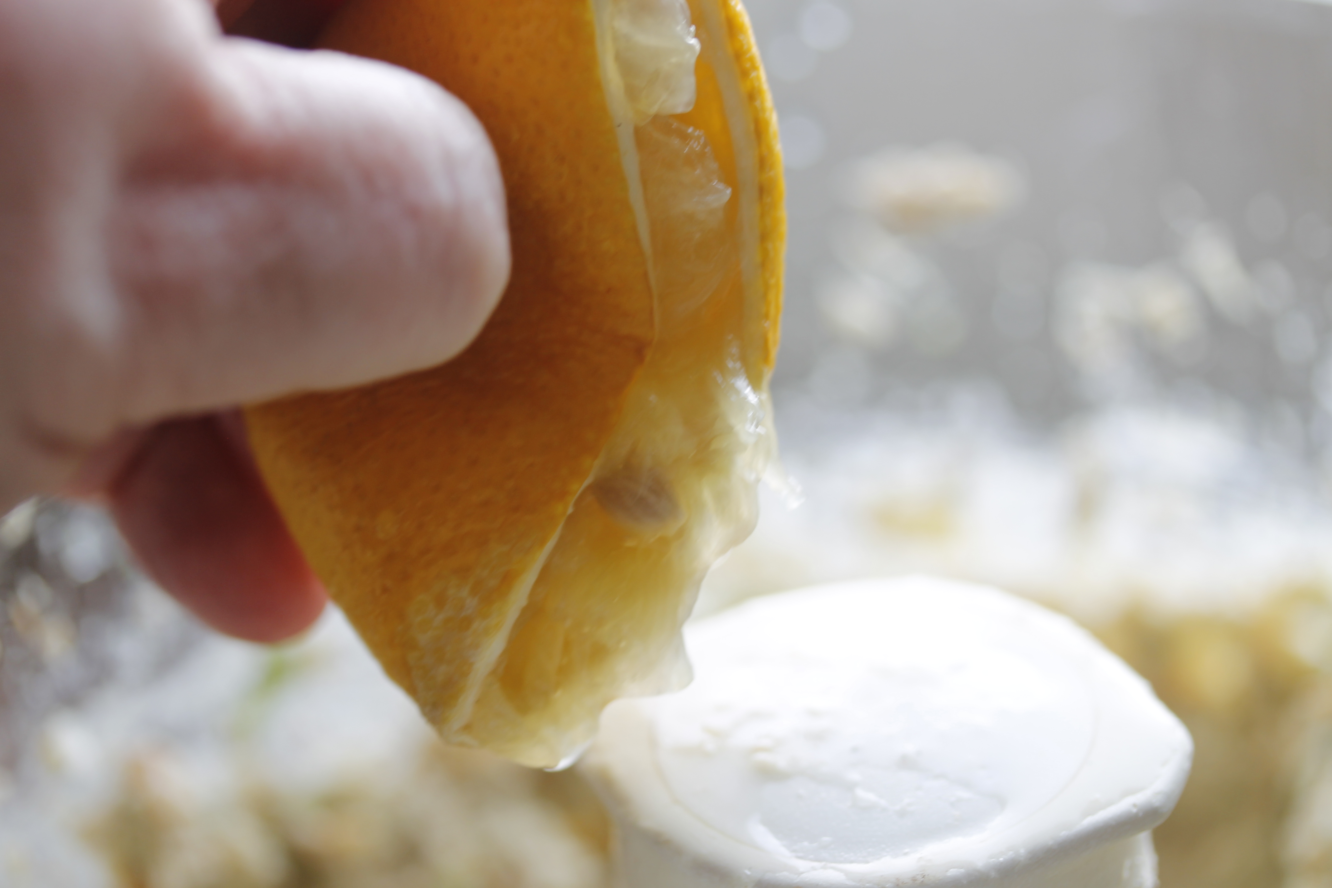 Svo kreisti ég safa úr hálfri sítrónu út í. Eða ég reyndar kreisti ekki allan safann úr helmingnum strax, bara hluta og smakkaði mig svo áfram. En ég held að ég hafi endað með að notað næstum allan safann.
