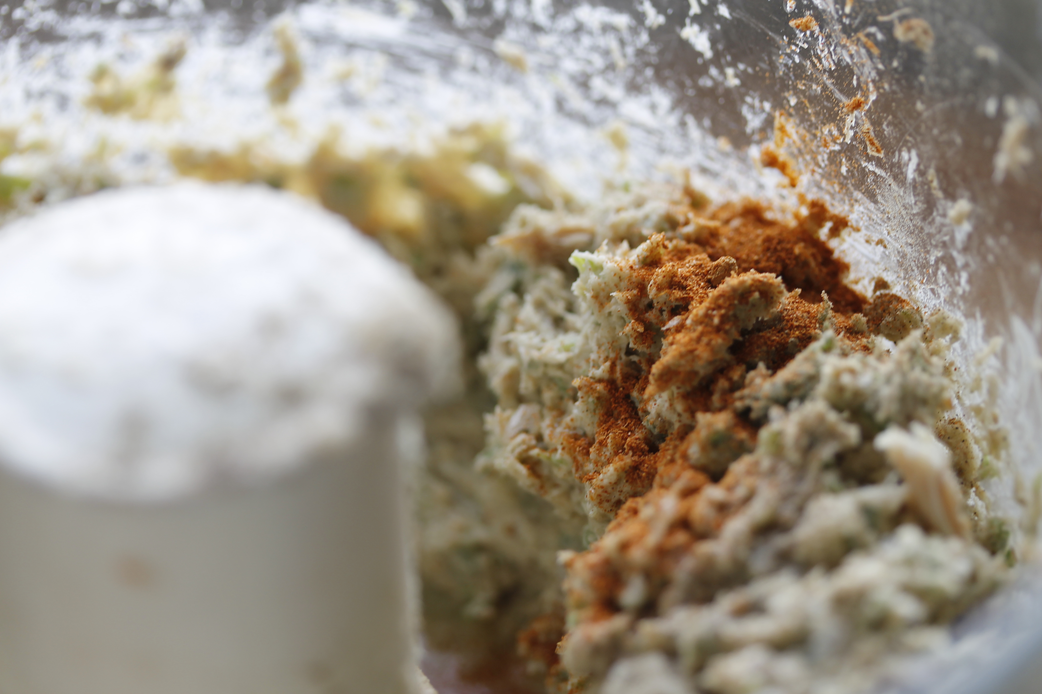 Svo bragðbætti ég með pipar, salti og svolitlu chilidufti. Ekki chilipipar, hann var í uppskriftinni sem er í Jólamatur Nönnu og það var fínt líka (bara ekki nota mikið, maður á rétt að finna að hann sé þarna en ekki meira) en núna fann ég ekki chilipiparinn og notaði svolítið chiliduft (chili powder) í staðinn. Kannski svona rétt rúmlega hnífsodd. Það var ekki síðra. Hrærði þessu saman við og smakkaði mig áfram.