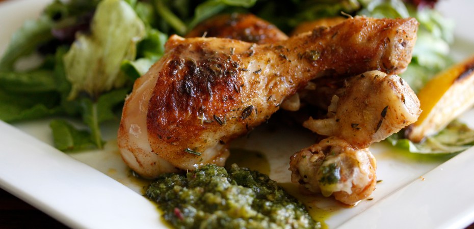 Sítrónusteiktir kjúklingaleggir með basilíkusósu