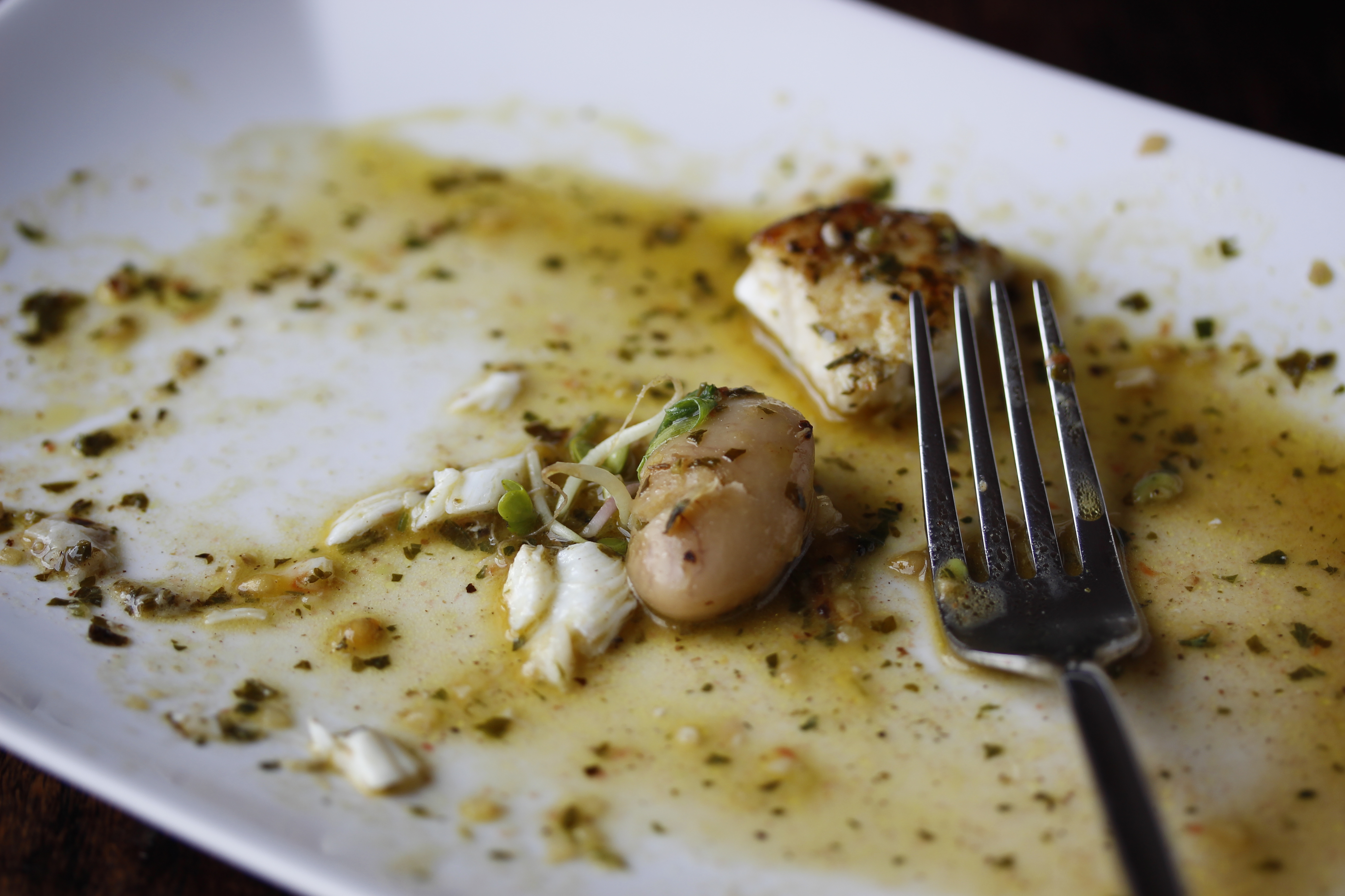 En svona fyrir utan veðrið, þá réðist nú matseldin aðallega af því hvað til var því ekki fer maður í búðina. Og ég átti 300 g af steinbít, hálfa dós af smjörbaunum (sem ég hafði opnað og notað að hluta í gær því miðinn datt af henni og ég vissi að ef ég opnaði hana ekki strax myndi ég steingleyma hvað væri í henni – hefði þá að vísu getað notað hana í einhverri óvissumatargerð en samt …) og svo átti ég afgang af basilíkusósunni sem ég notaði með kjúklingaleggjunum í fyrradag.