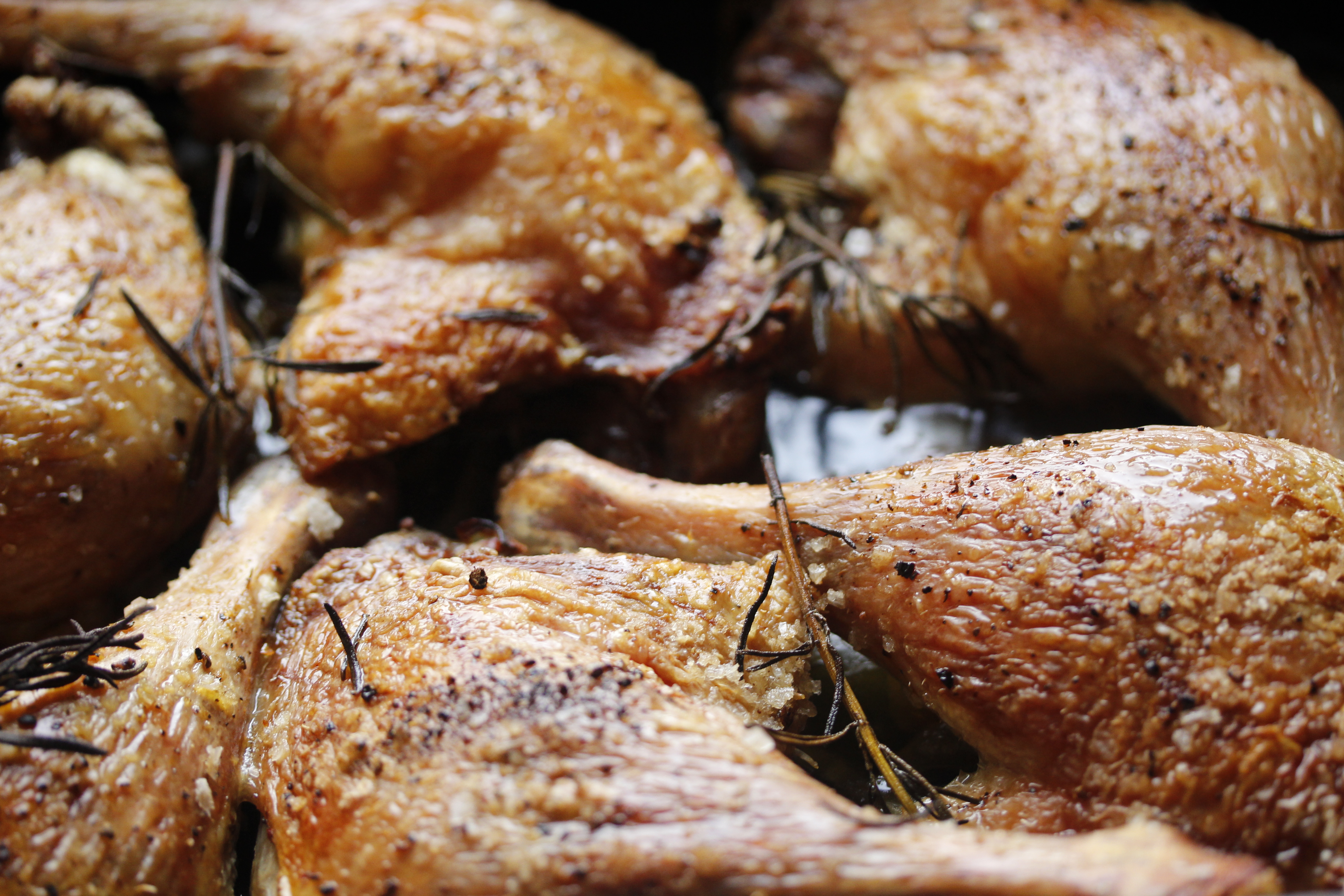 Andabringur eru afbragðsmatur (sem einbúar geta vel látið eftir sér að elda ofan í sig af og til, ein andabringa er til dæmis ódýrari en pítsa) og heilar endur líka en með árunum kann ég sífellt betur að meta lærin, verst að það er misauðvelt að fá þau. En einhverntíma í fyrra var nóg af þeim og þá keypti ég þessi (og fleiri) og stakk í frysti. Lærin eru tiltölulega ódýr og afskaplega auðelduð – það er eiginlega varla hægt að klúðra þeim, þau steikja sig sjálf, liggur við. Og svo eru þau bragðmikil og góð.