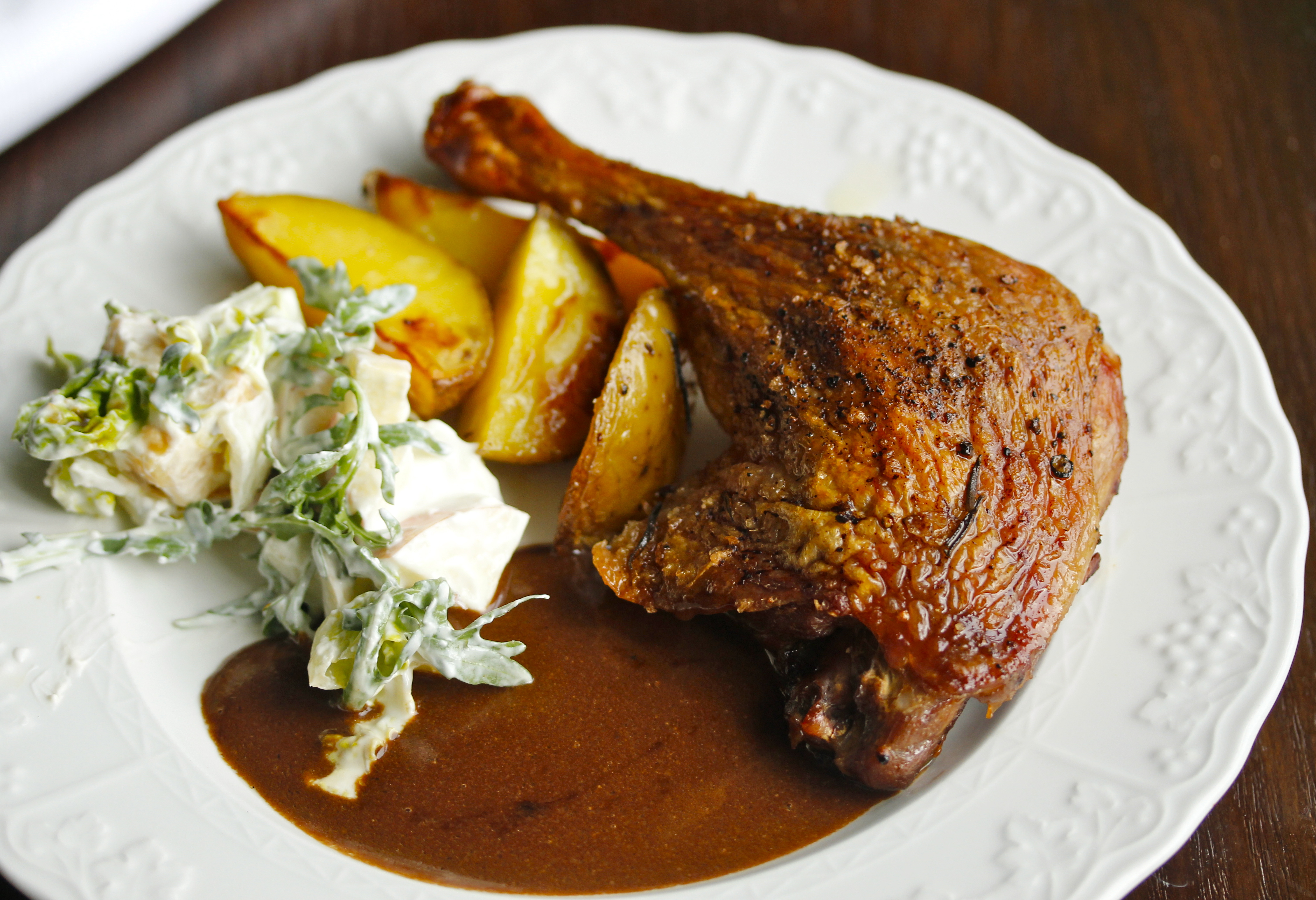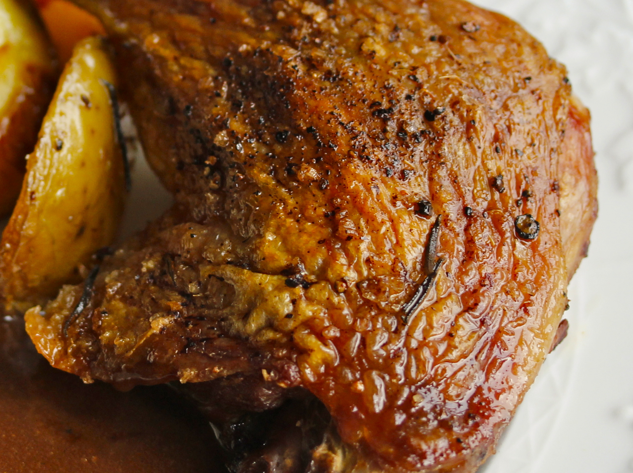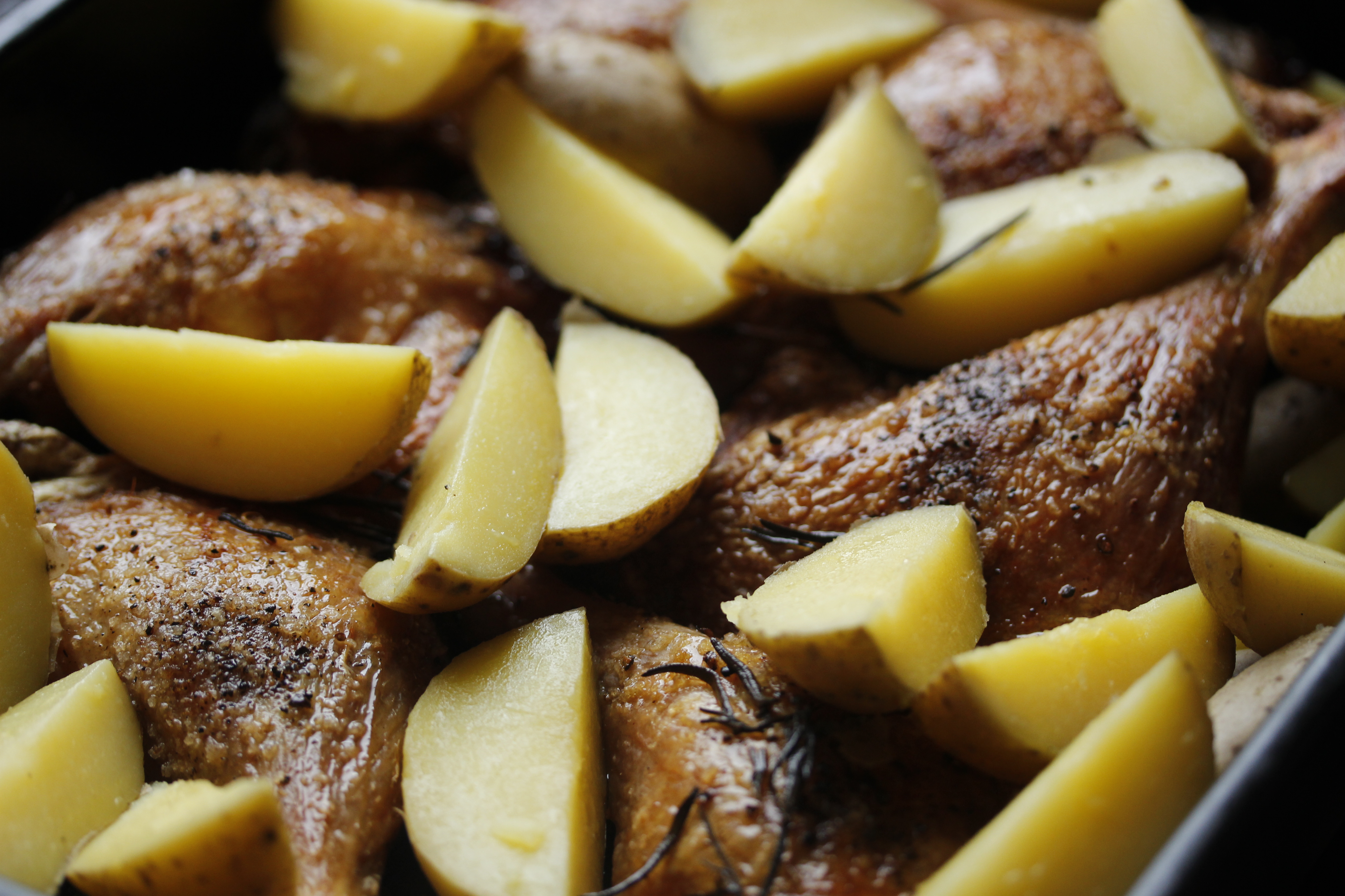 Þá voru kartöflurnar orðnar fallega gullinbrúnar og svolítið stökkar og andalærin meyr og mjúk og hamurinn brakandi stökkur.