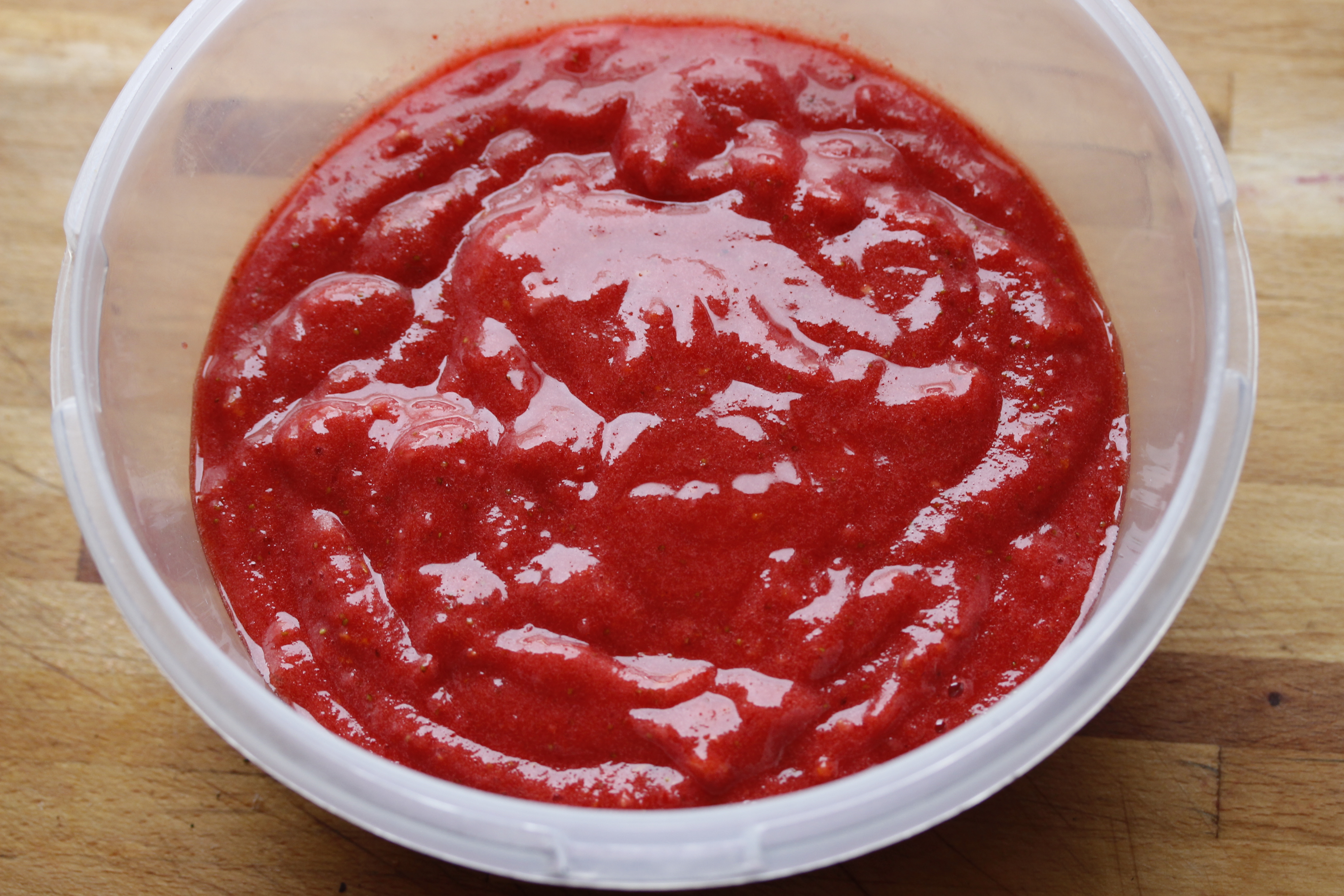Setti sorbetið í skál eða box og í frysti. Ef berin voru enn hálffrosin þarf sorbetið ekki að vera þar nema hálftíma eða svo, en það má líka láta það harðfrjósa.