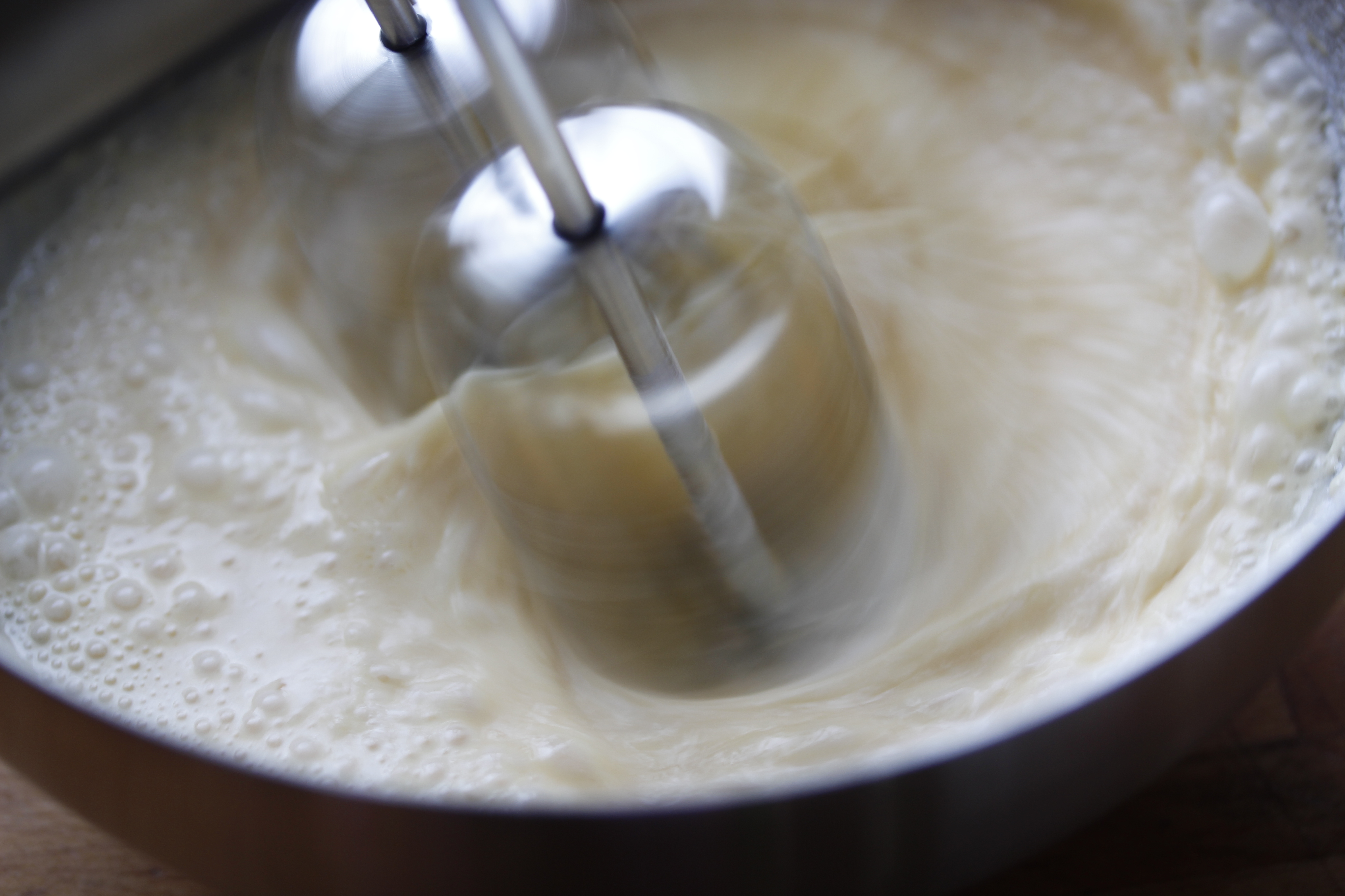 Ég hitaði á meðan ofninn í 175°C og fór svo að gera fyllinguna. Setti í skál 2 egg, 4 msk af rjóma, 3 msk af sykri, 4 msk af möndlumjölinu, 1 msk af hveiti og 1 tsk af vanilluessens.