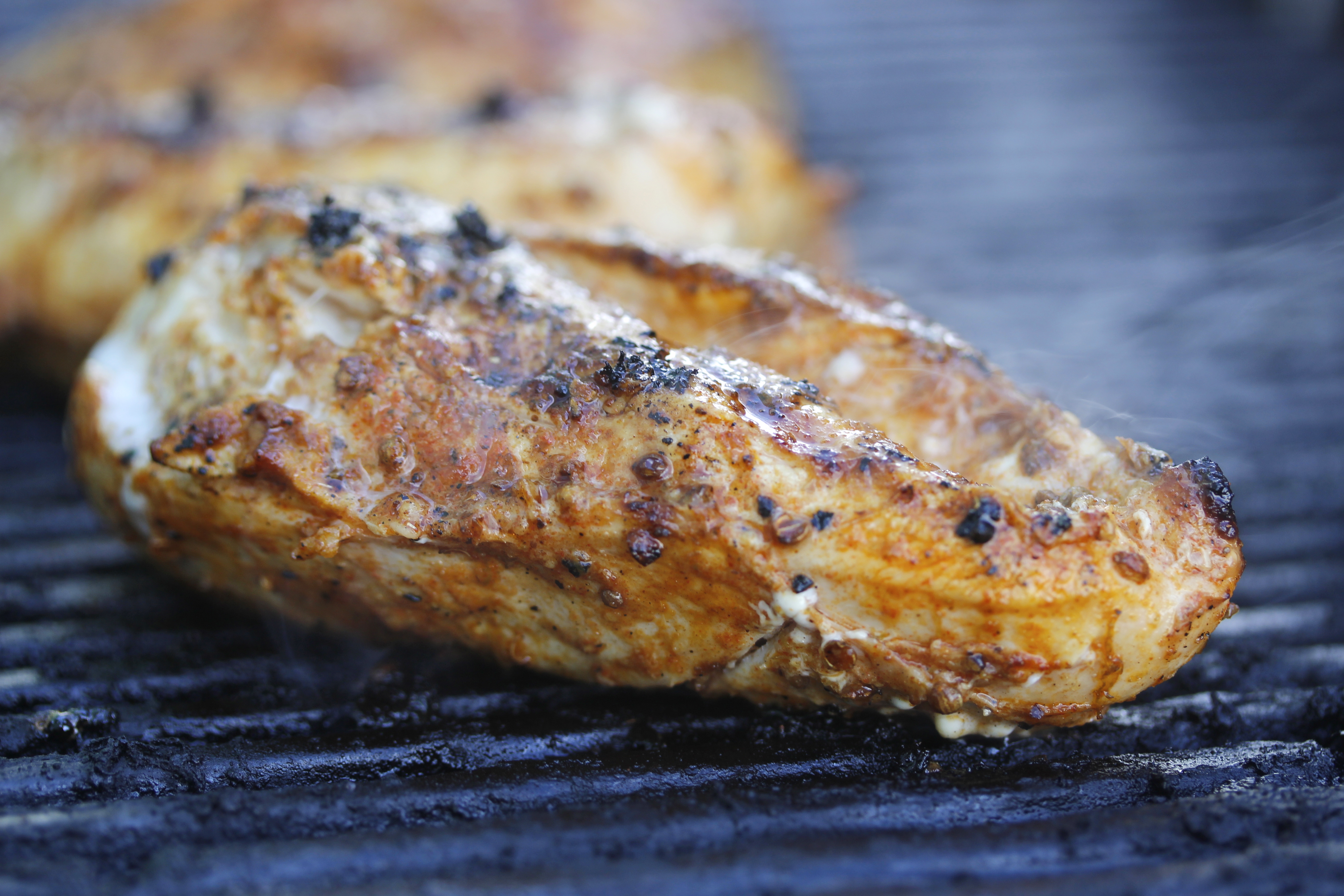 Ég grillaði bringurnar í 10 mínútur á hvorri hlið, eða þar til þær voru steiktar í gegn – það gæti verið ráðlegt að skera í eina þeirra til að athuga hvort hún er gegnsteikt. Best er að opna grillið sem minnst svo að hitinn haldist.