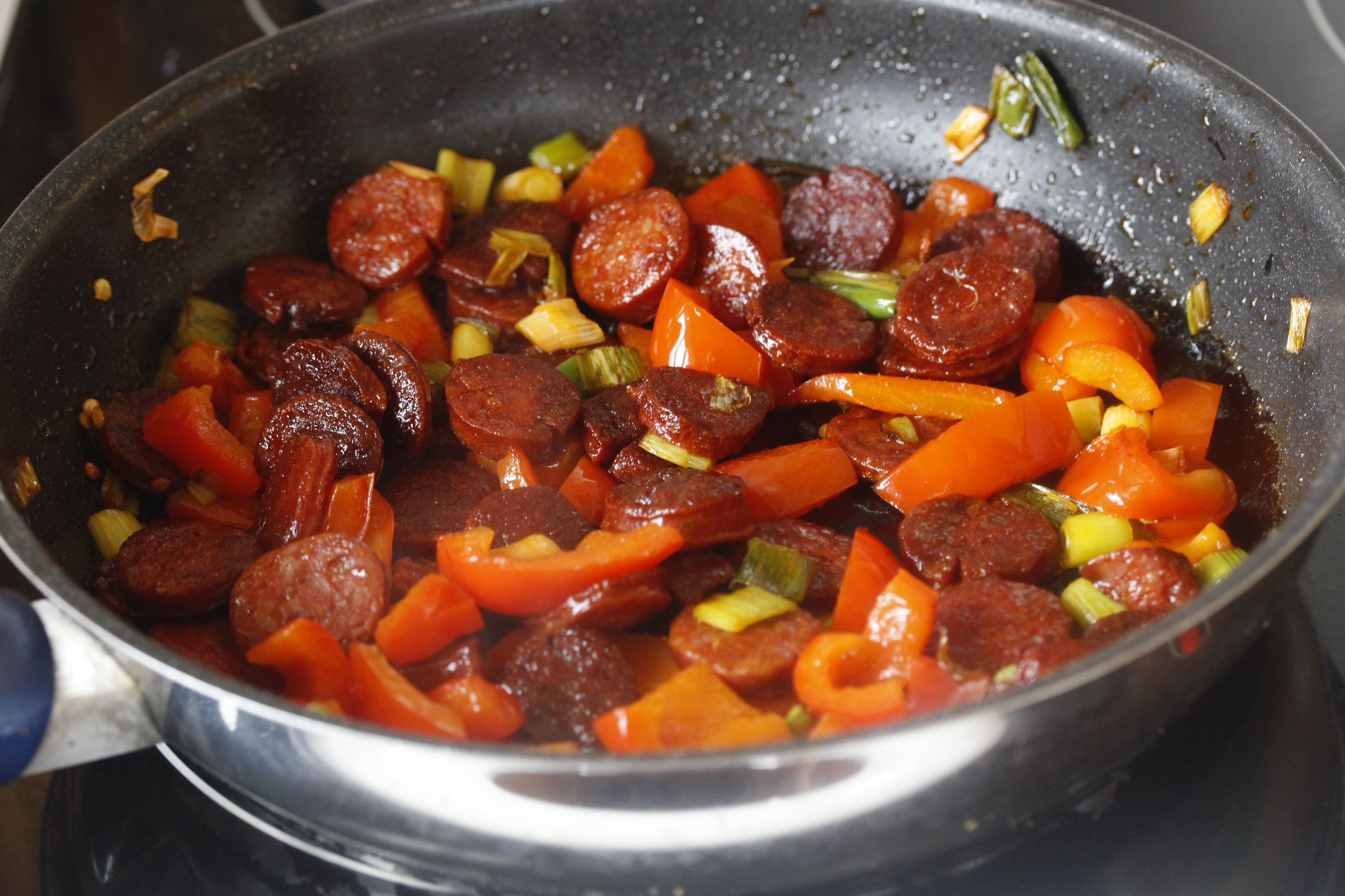 200 g chorizopylsa (ég notaði sterka en má vera mild)
