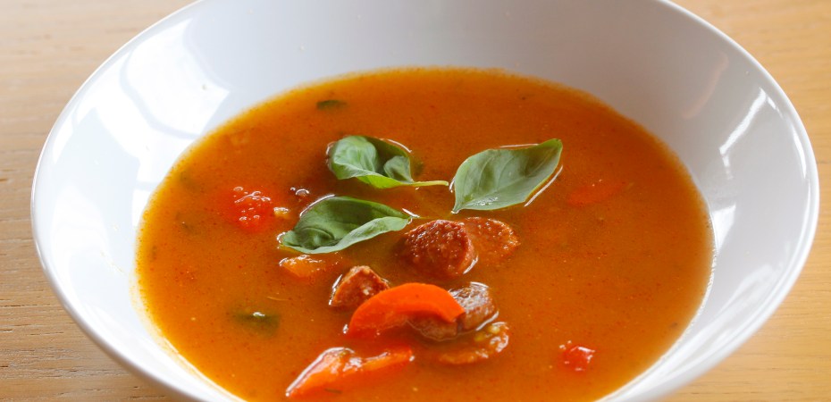 Kraftmikil, vel krydduð og litrík súpa. Og bara nokkuð góð, fannst mér. Og sumarbústaðareigendunum held ég líka.