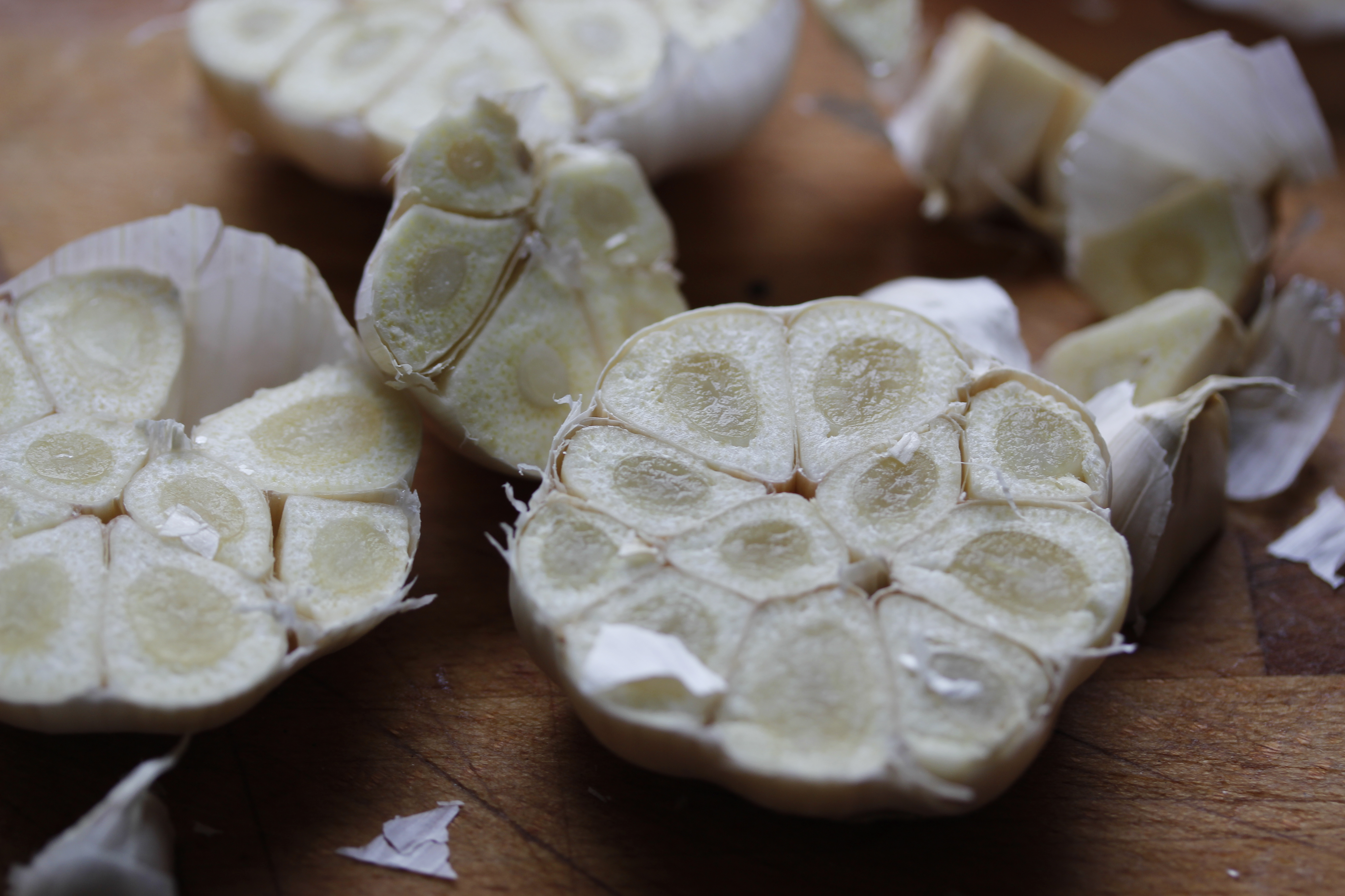 Og svo er um að gera að hafa hvítlaukshelmingana með svo fólk geti tekið sér geira og kreist úr þeim ljúffengt hvítlauksmaukið.