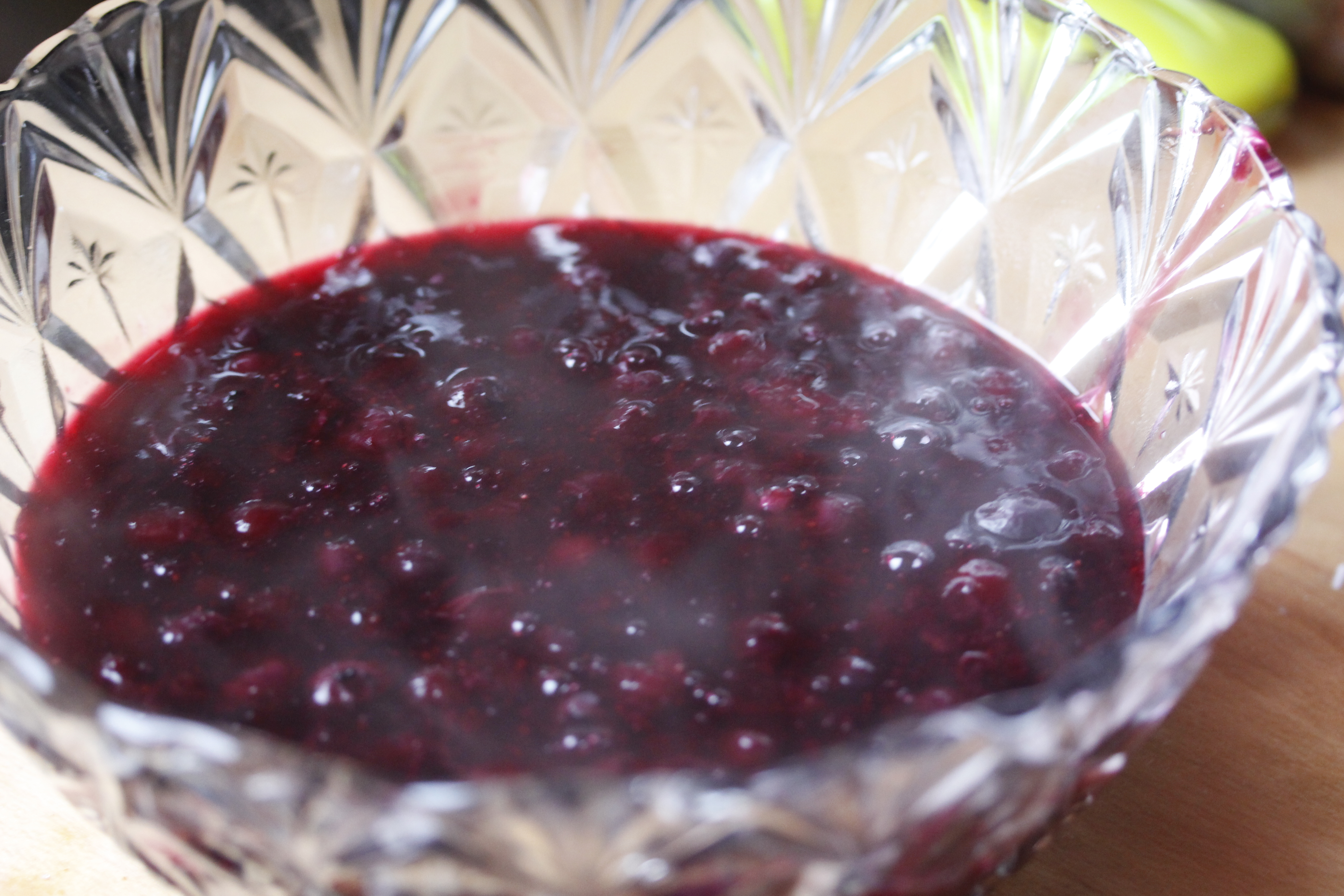 Allavega, ég setti 500 g af berjum, 1/2 l af vatni og 70 g af sykri í pott. Skar gula börkinn af hálfri sítrónu og setti út í og kreisti líka safann út í.