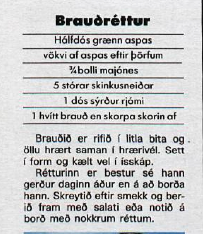 Ég er ekki alveg viss um hvort maður mundi kalla þetta heitan brauðrétt núna, frekar bara heitt brauð, heita brauðlengju eða eitthvað svoleiðis. Þetta var 1974 en 20 árum seinna var komin til sögunnar kunnuglegri útgáfa: