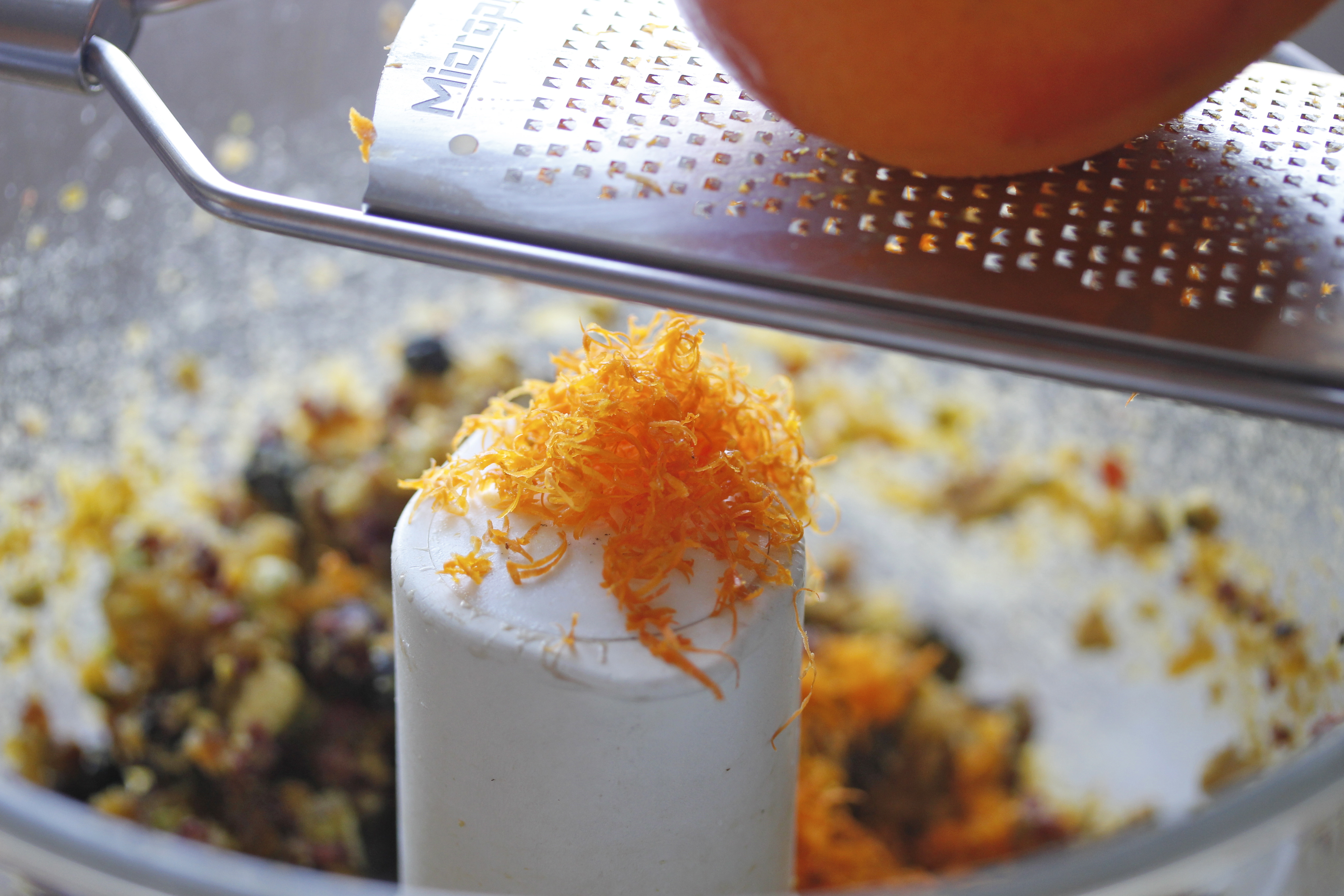Svo reif ég börkinn af einni appelsínu fínt út í og blandaði saman við ásamt einni matskeið af þunnu hunangi.
