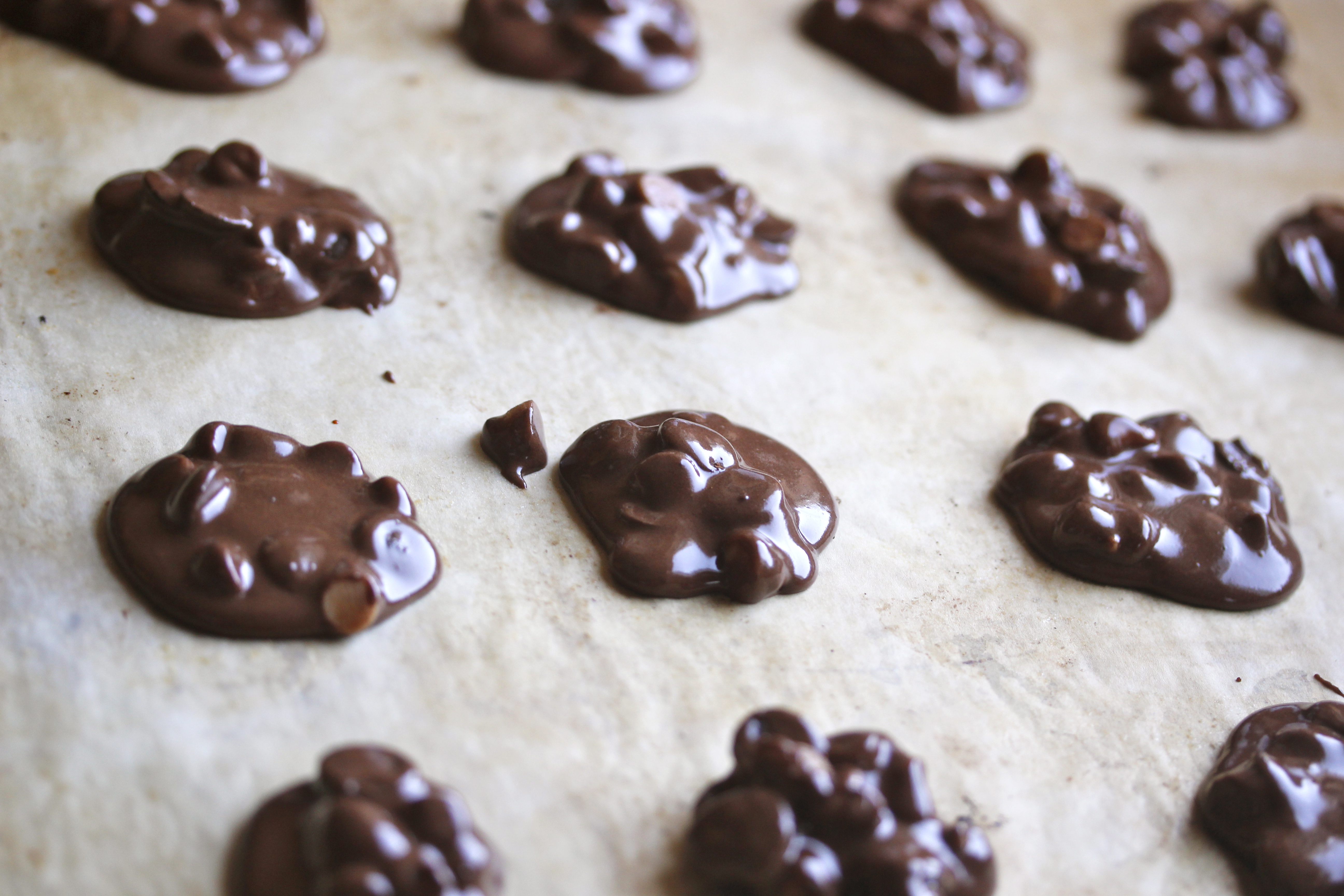 200 g súkkulaðidropar, eða blanda af súkkulaði- og hnetusmjörsdropum
