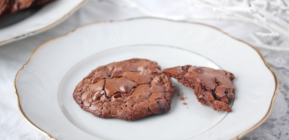 Þessar eru alveg hveitilausar en svo sannarlega ekki sykurlausar. Eiginlega er þetta óþeyttur marens – bara sykur og eggjahvítur, með kakódufti og dálitlu kryddi. Og auðvitað súkkulaðidropum.