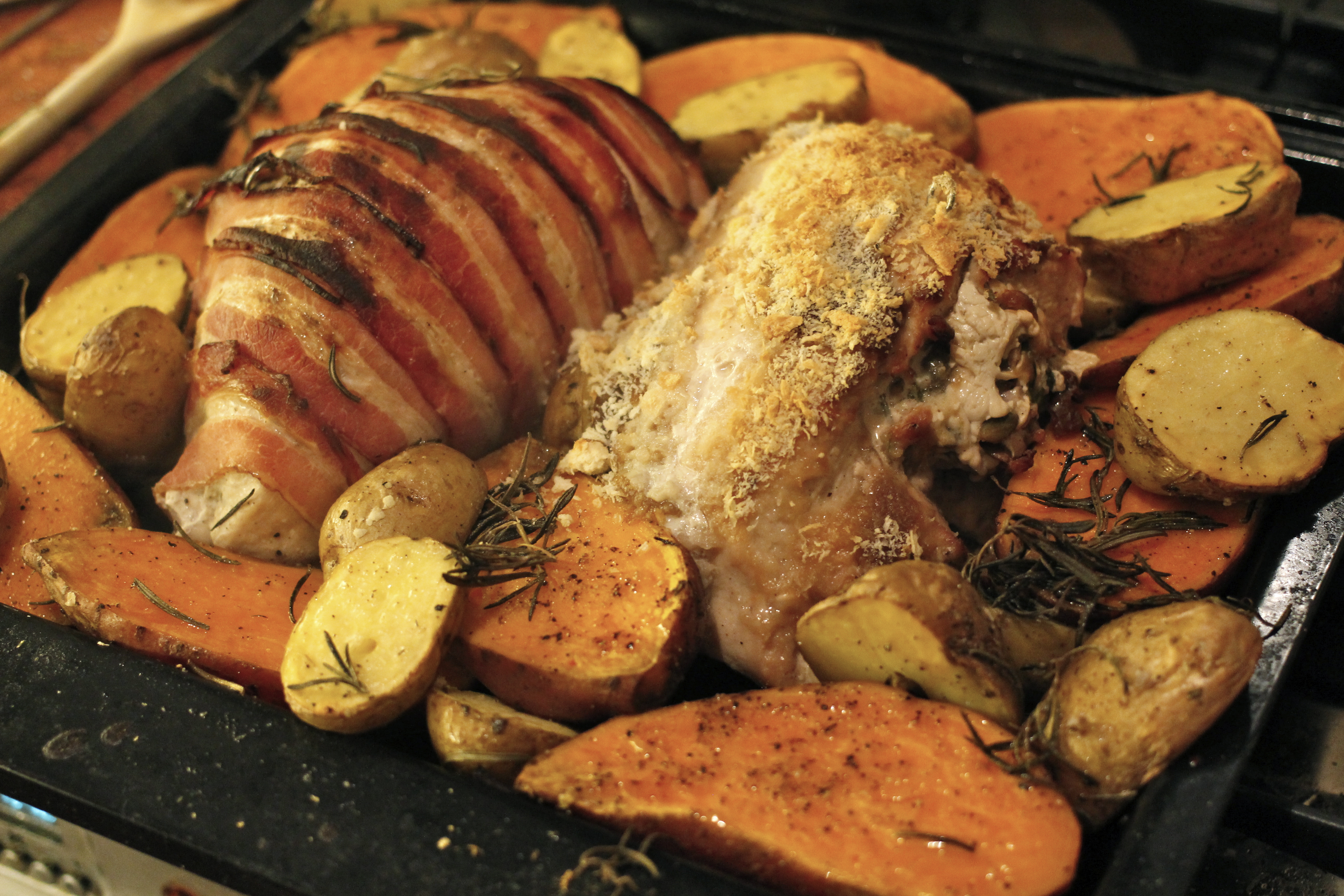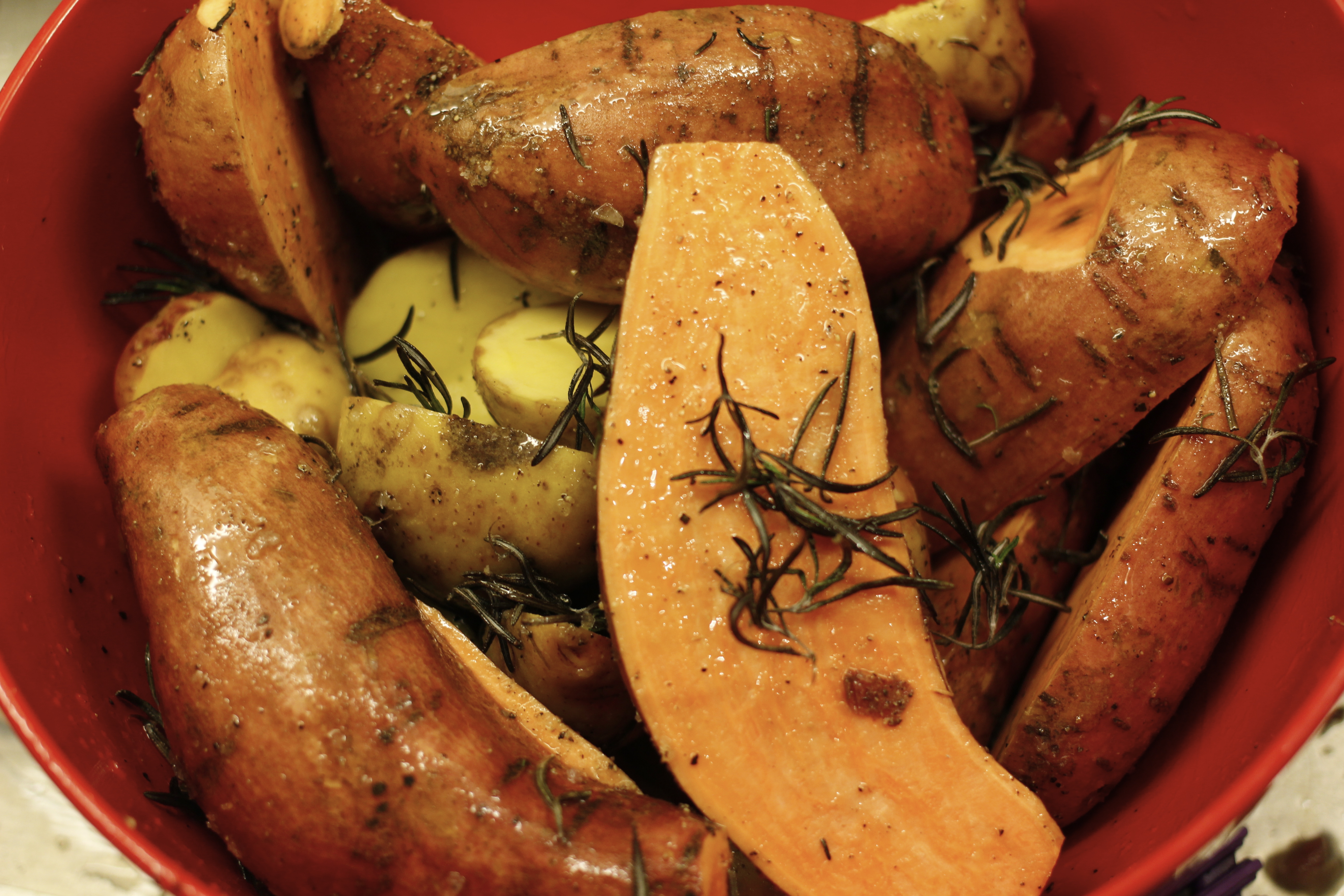 Rósmarínbakaðar kartöflur og sætar kartöflur