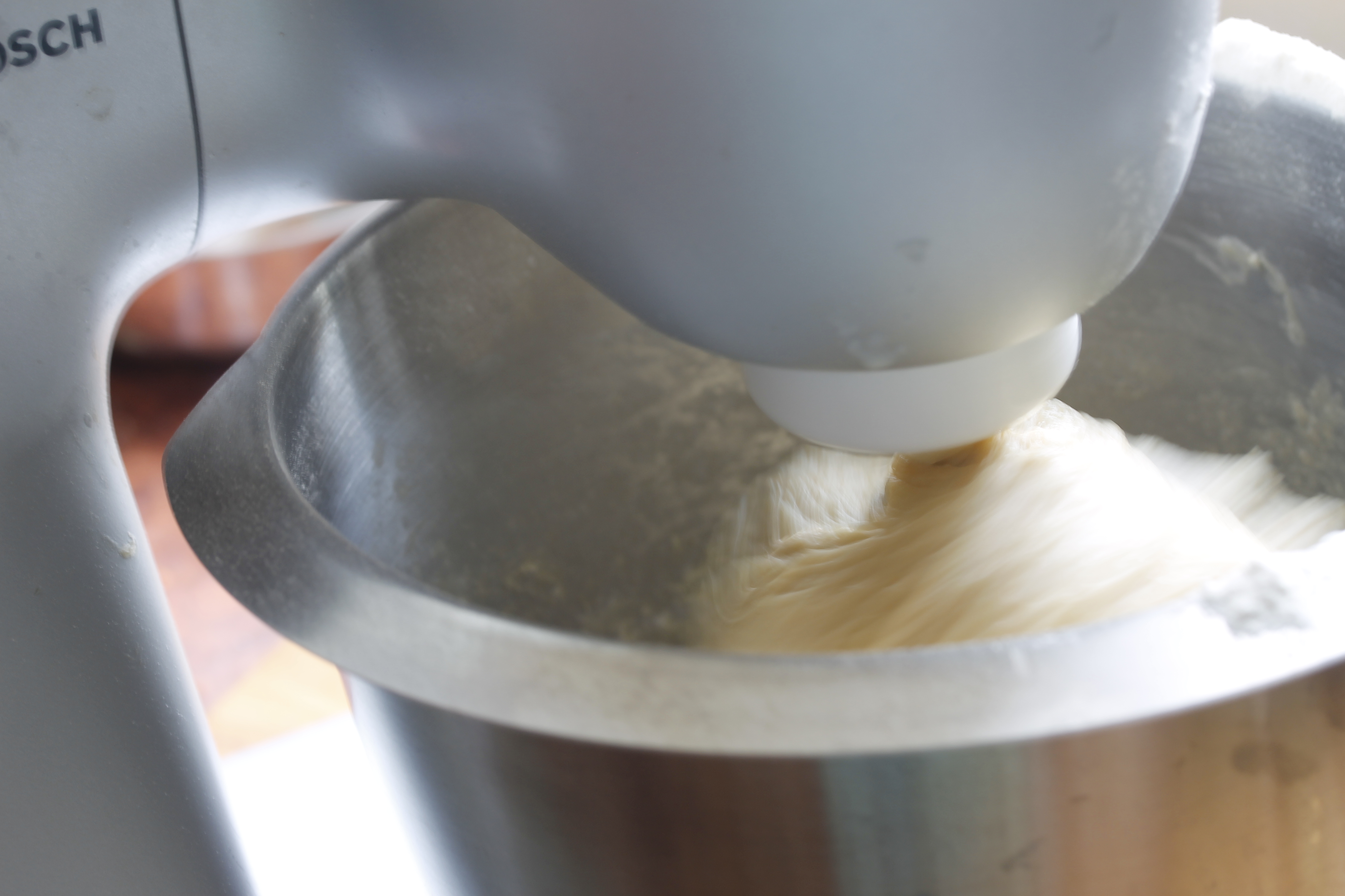 Bætti við hveiti eftir þörfum, þar til deigið var fremur þétt og vel hnoðunarhæft en þó enn rakt.