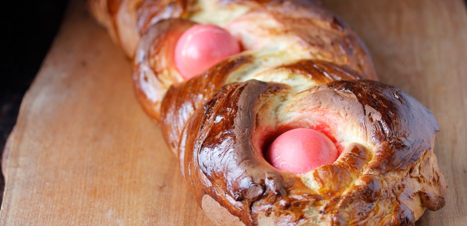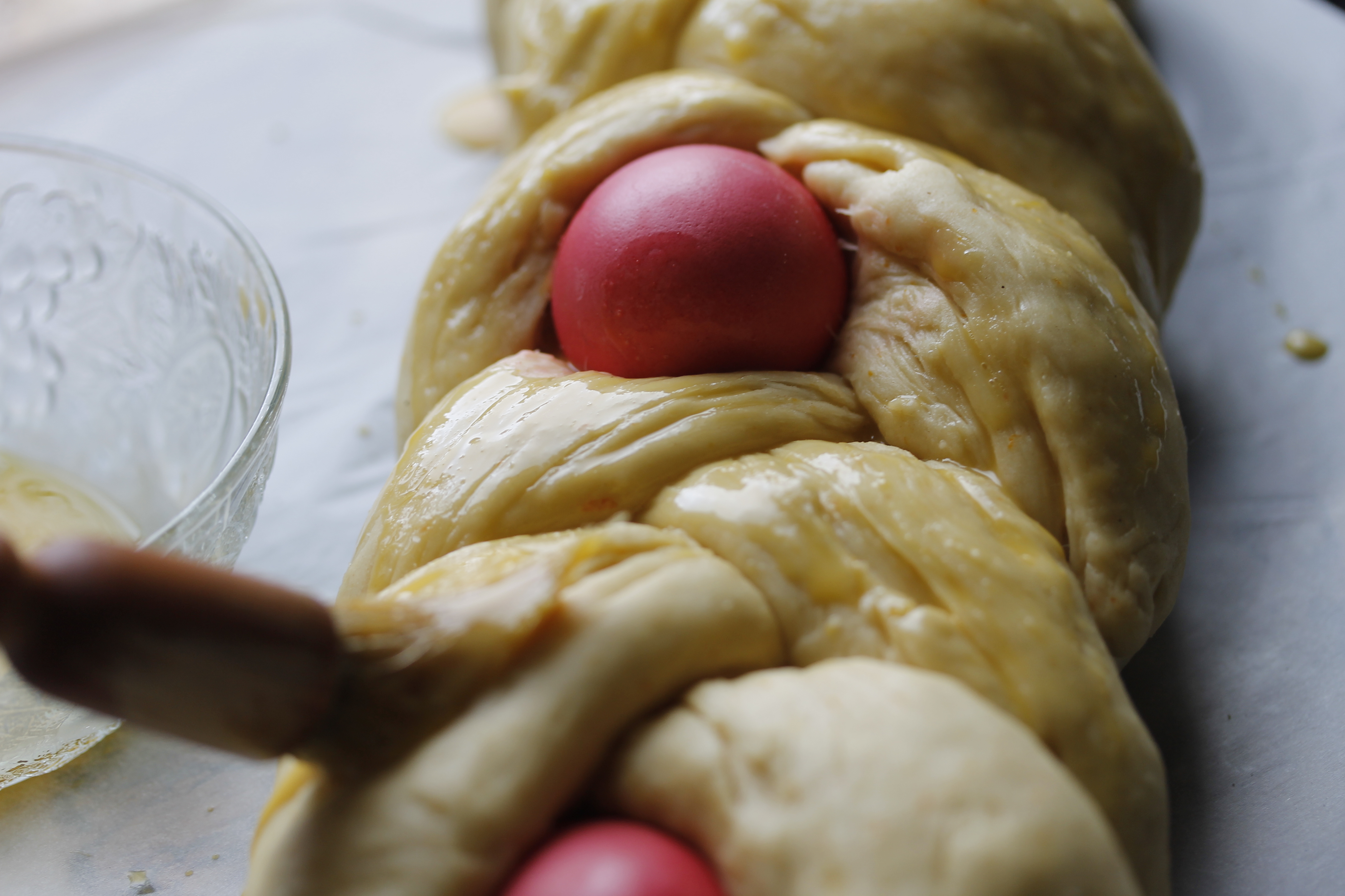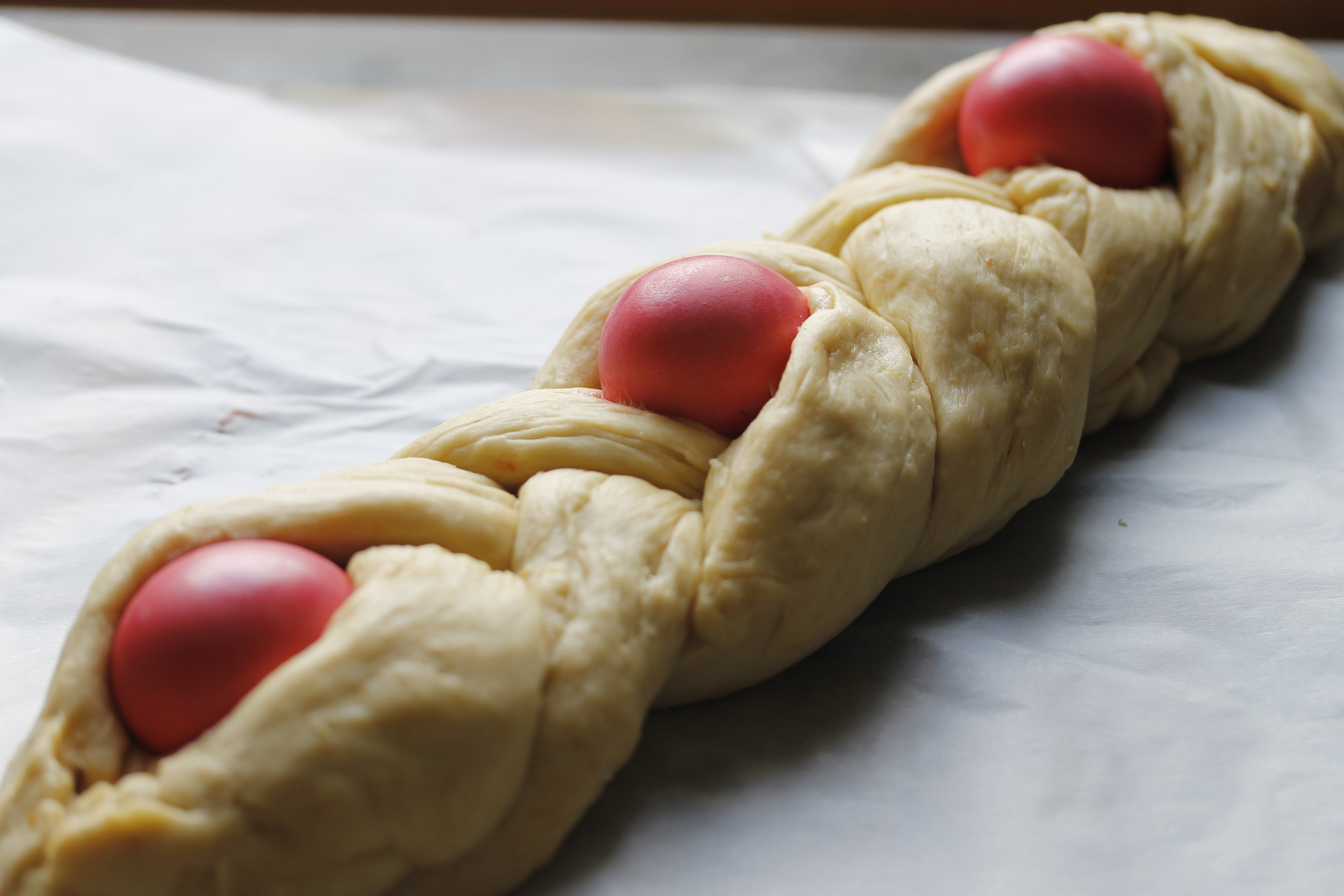Á páskunum er brauðið oftast skreytt með lituðu eggi eða eggjum sem eru bökuð með því. Oftast eru eggin rauð en geta verið með öðrum lit eða litum.