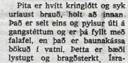 Líklega þarf varla að segja fólki nú orðið hvað falafel er, þessar litlu, djúpsteiktu baunabollur eru svo alþekktar. En þannig hefur það ekki alltaf verið og svona var pítu og falafel lýst í grein um mataræði Ísraelsmanna, sem birtist í Vísi 1965: