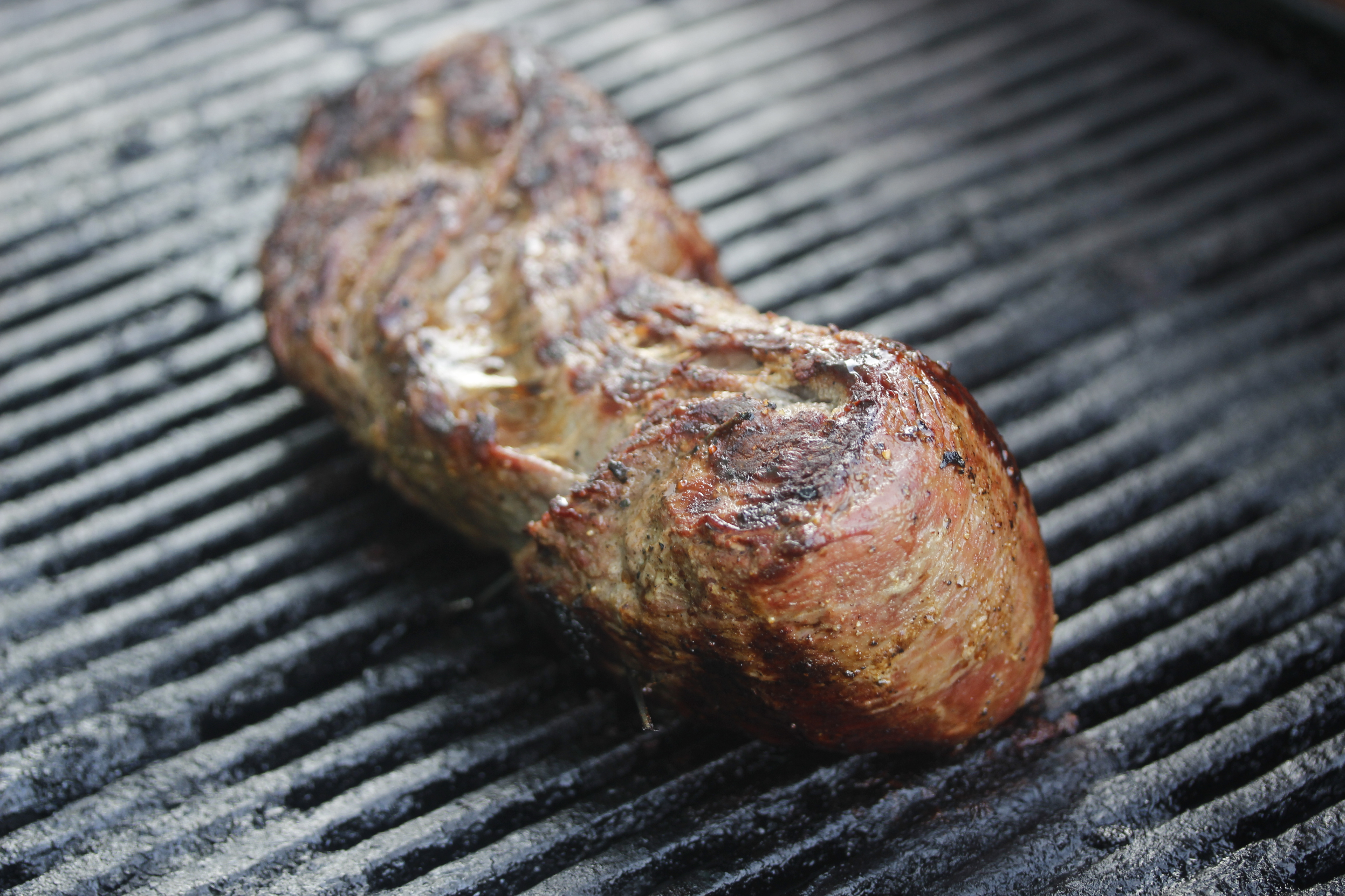 Sneri henni svo á svona 5 mínútna fresti og grillaði á fjórum hliðum, semsagt í um 20 mínútur alls (ég og gestirnir viljum öll helst frekar rautt kjöt en það er smekksatriði, best að nota kjöthitamæli til að vera viss). Það er líka svo margt sem getur haft áhrif á grilltímann, eins og hitinn á grillinu, veðurskilyrði, þykktin á lundinn og fleira. Ég hafði grillið lokað á meðan; ef það er með hitamæli er best að hann sýni sem næst 200°C.