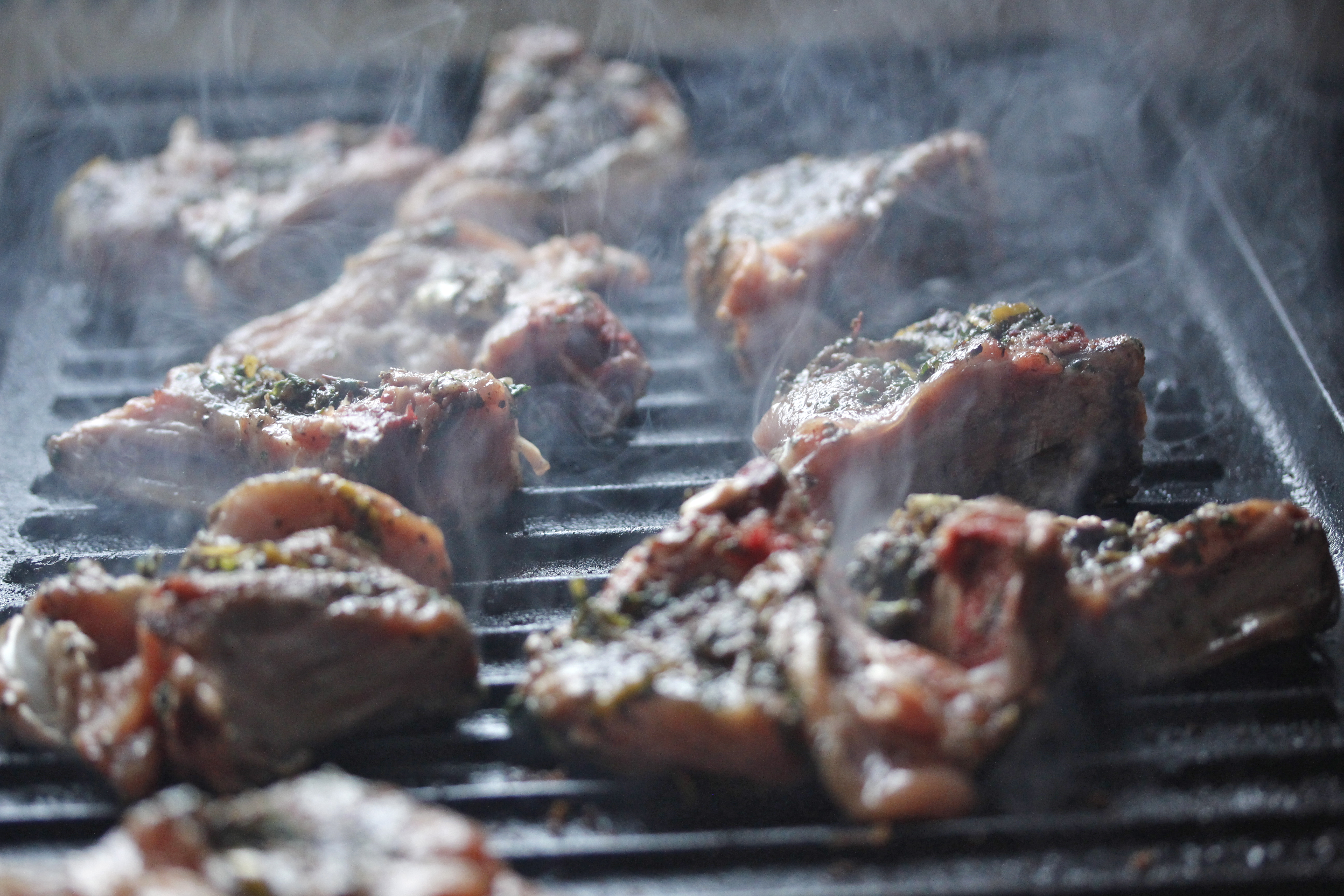 Í staðinn setti ég kóteletturnar á vel heita grillpönnuna og grillaði þær við háan hita í um 2 mínútur á hvorri hlið. Svo slökkti ég undir pönnunni (eða ef maður er með útigrill eru þær færðar yfir á  svalasta staðinn á grillinu) og lét kóteletturnar standa í um fimm mínútur.