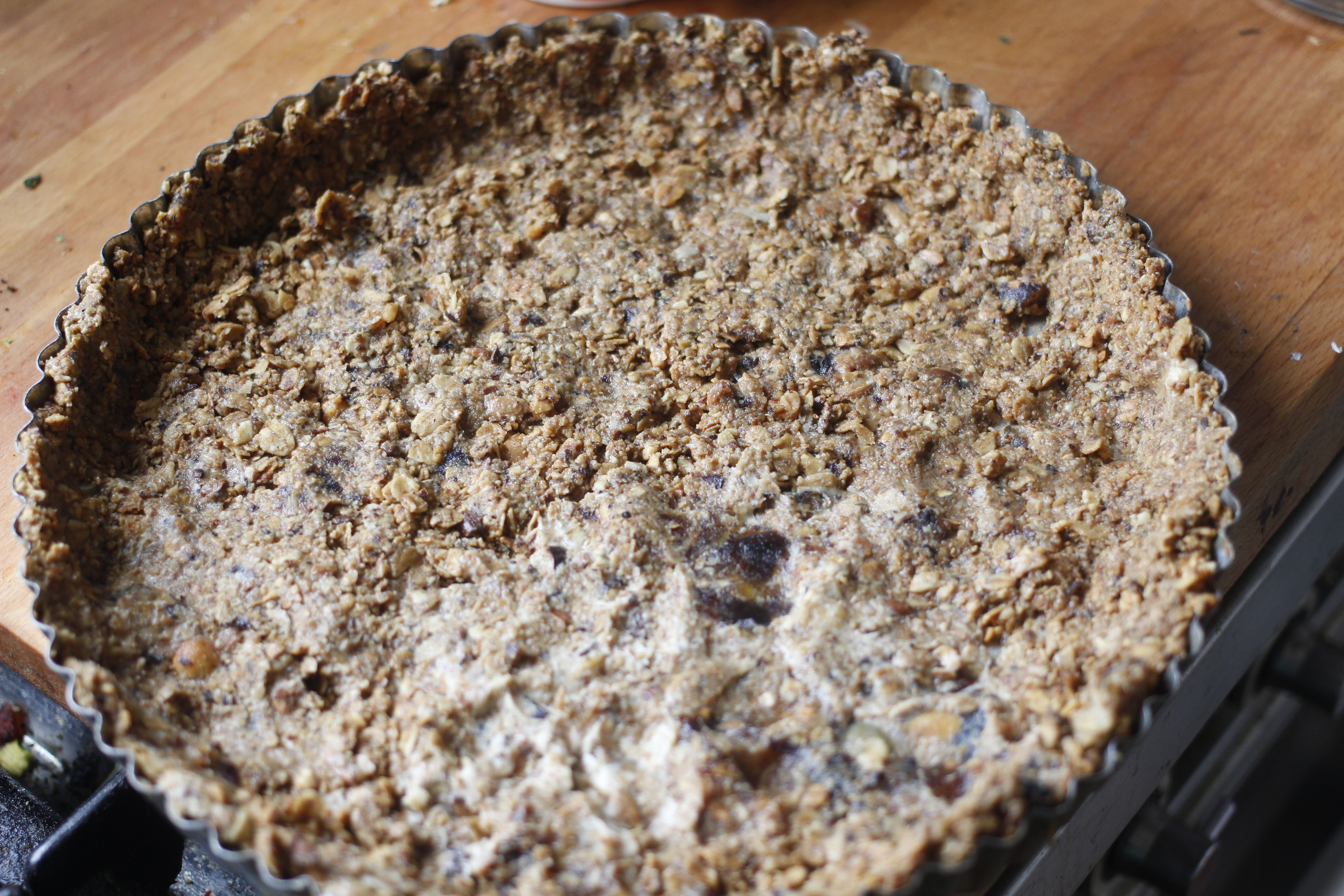 Ég hellti svo blöndunni í lausbotna bökuform og þrýsti henni á botninn og upp með hliðunum. Kældi botninn svo vel (setti hann reyndar bara í frysti í svona 15 mínútur.