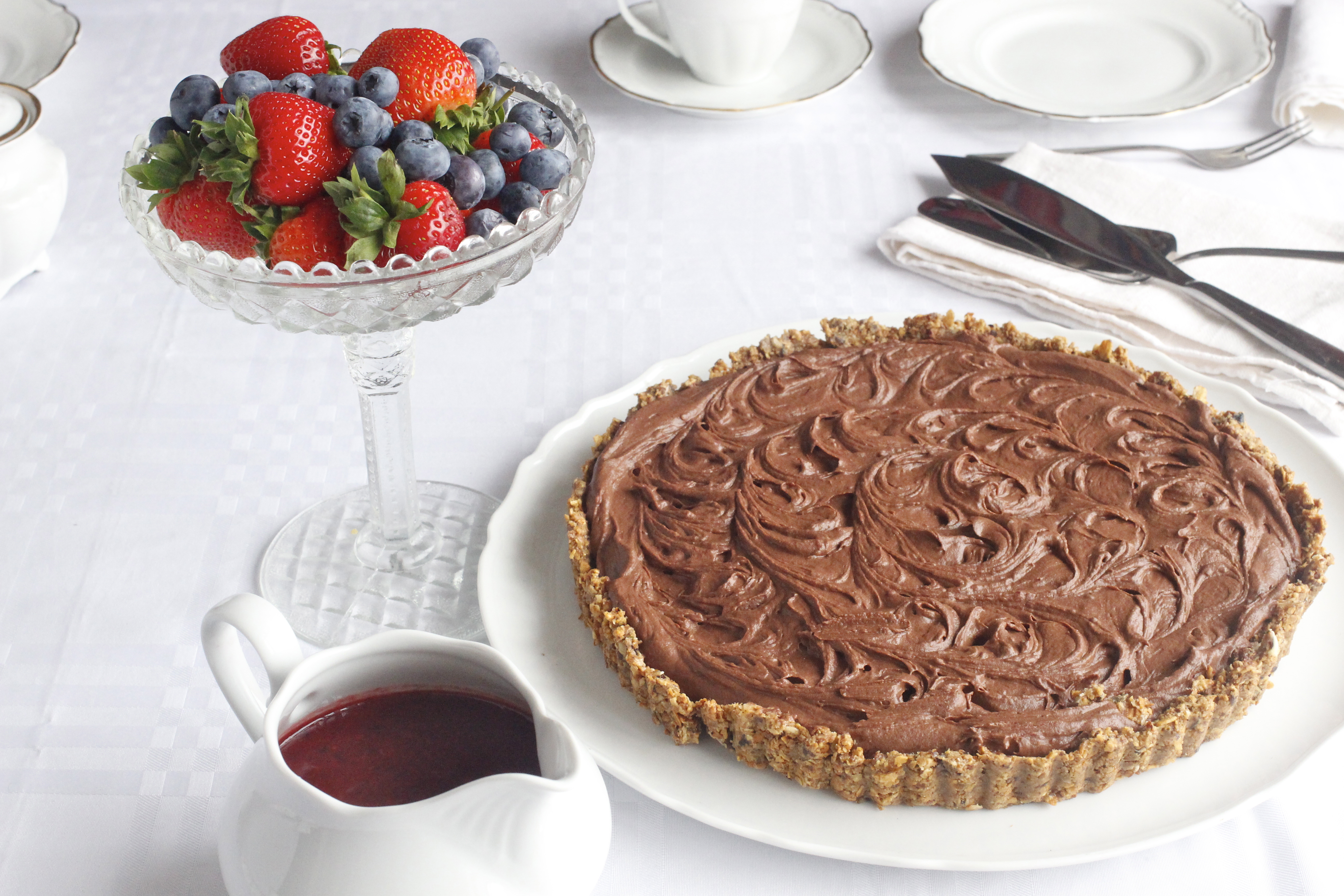 Þetta er semsagt óbökuð súkkulaðiostakaka. Glútenlaus ef það er málið. En nei, ekki hrákaka (eins og það er nú líka skelfilega ljótt og vont orð) því að granólablandan er jú ristuð í ofni.