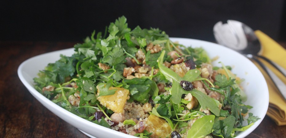 Kínóasalat með kjúklingabaunum, hnetum og rúsínum