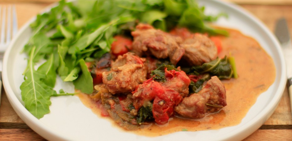 Lambapottréttur með tómötum, gulrótum og grænkáli