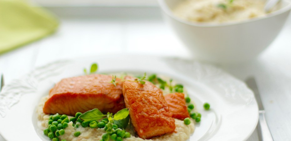 Sellerírótar- og perumauk með pönnusteiktum laxi