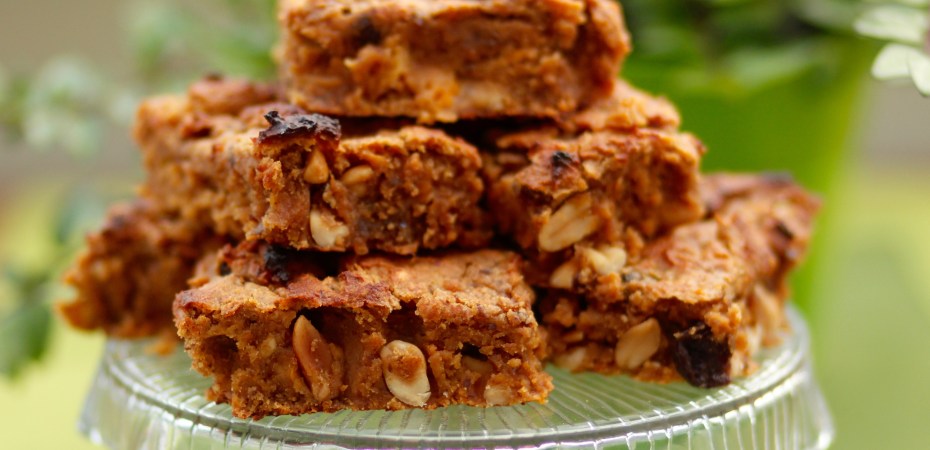 Það er nú ekkert meiningin að hér verði bara uppskriftir að salötum og súpum þennan mánuðinn – og ekkert endilega heldur að allar uppskriftir verði vegan. Flestar kannski samt. Þessi er það reyndar en hér er þó hvorki um súpu né salat að ræða, heldur köku. Eða orkubita eða hvað maður vill kalla það.