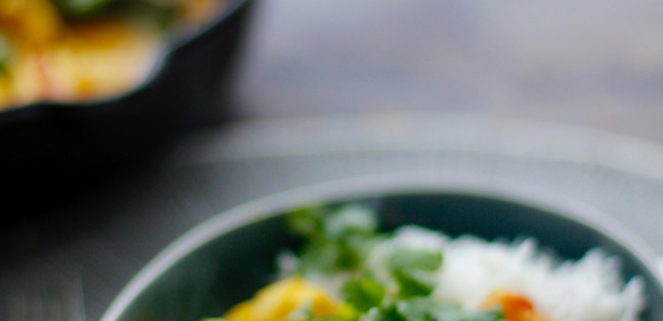 Þessi uppskrift er hins vegar úr bókinni minni, Pottur, panna og Nanna, en hafði reyndar áður birst í indverskum þætti sem ég gerði fyrir MAN. Þetta er pottréttur en það má líka bæta við annarri dós af kókosmjólk eða bara meira vatni og bera hann fram sem súpu.