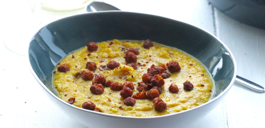 Túrmerik-blómkálssúpa með ristuðum kjúklingabaunum