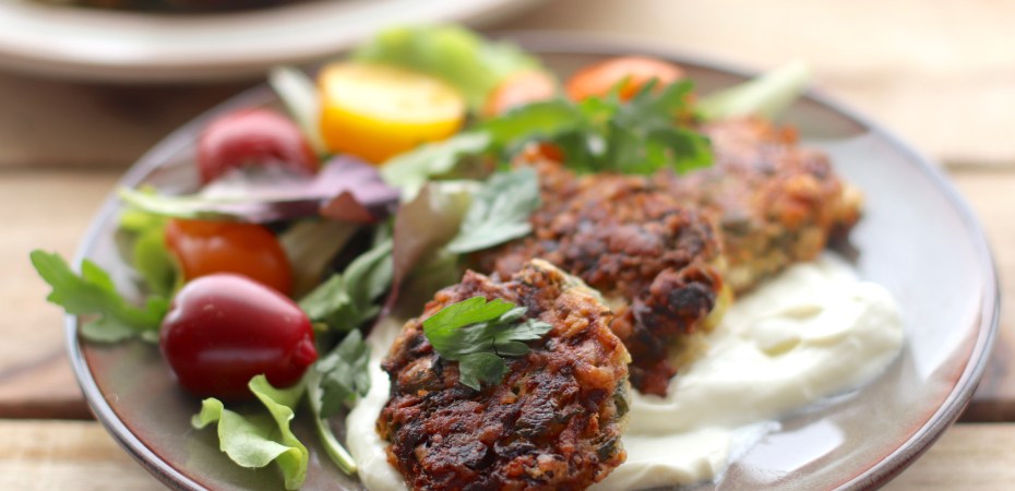 Þetta eru semsagt kúrbíts-, feta- og mintubuff, einstaklega góð grænmetisbuff, tilvalin sem meze eða forréttur. Á Kýpur er algengara að gera litlar bollur úr blöndunni og djúpsteikja þær en mér finnst þetta enn betra sem pönnusteikt buff.