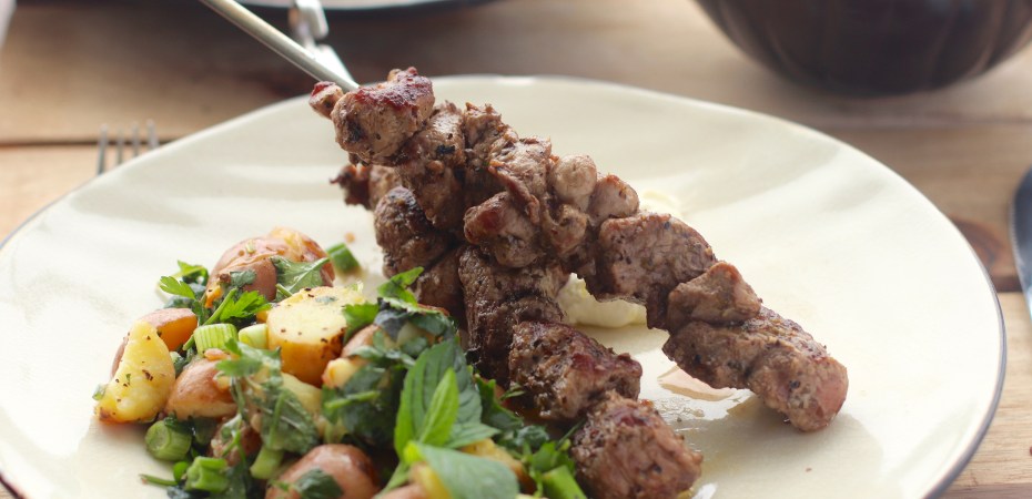 Ég bar svo kebabið fram eins og ég hafði fengið það á götuveitingahúsi í norðurhluta Nikósíu, með kartöflusalati og grískri jógúrt, hrærðri með ólífuolíu, pipar og salti.