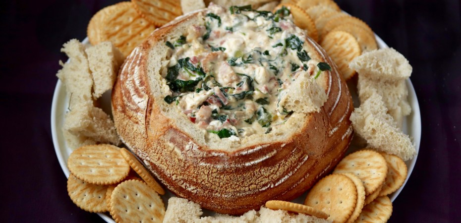 Spínat- og beikonídýfa í brauðskál