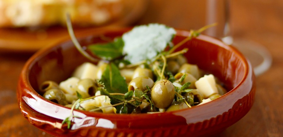 En hér er uppskrift að maríeruðum ólífum sem eru nú reyndar ekkert sér-galisískar; þetta er bara dæmigerður spænsku tapasréttur af því tagi sem maður fær víðast hvar á Spáni.