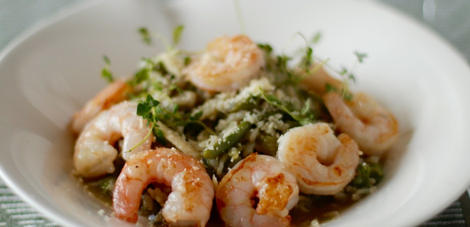Rísottó með rækjum og spergli